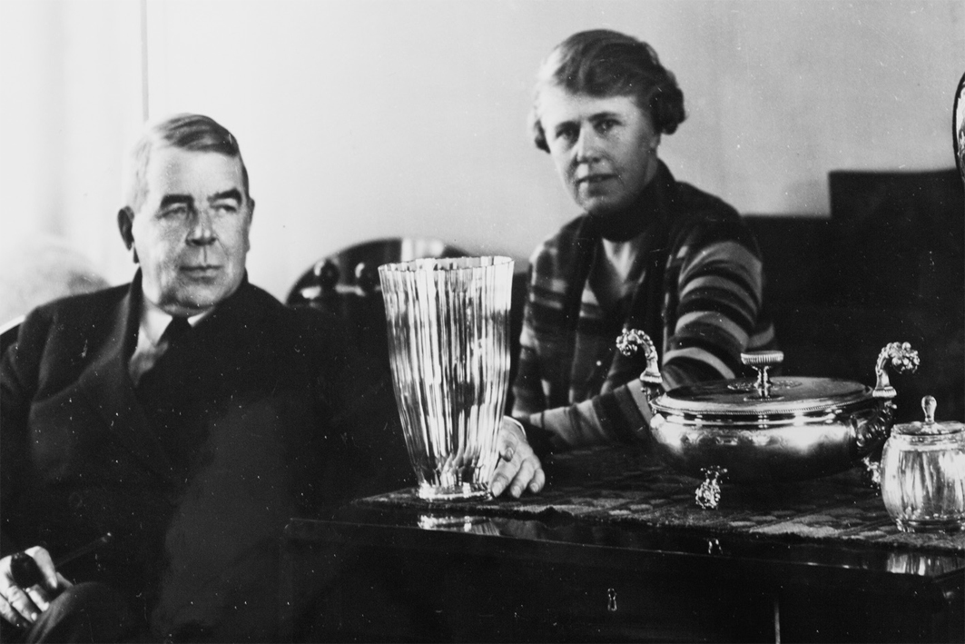 Strömbergshyttans produktion var emellertid inte S:s eget verk, utan i hög grad ett resultat av samarbetet med hustrun sedan 1903, Gerda Helga Elisabeth S (1879–1960), f Svensson, som tillsammans med maken gjorde en ledande insats inom svensk glaskonst. Gerda S var som ung anställd vid Kosta glasbruk och kom sedan via Sandviks glasbruk med sin make 1927 till Eda. Paret tog där intryck av den speciella sliptradition som fanns bland de hantverksskickliga arbetarna: breda fasetter med trubbiga vinklar samt olivslipning. Där skapades, med Gerda S som den egentliga formgivaren, ett glas i tjockväggig stil som bidrog till mellankrigstidens förnyelse av det svenska glaset. Strömbergshyttans ovanligt enhetliga produktion utmärktes av en tung, klassisk enkel stil, antingen osmyckad eller med ljusbrytningseffekter genom fasettslipning i klar kristall.