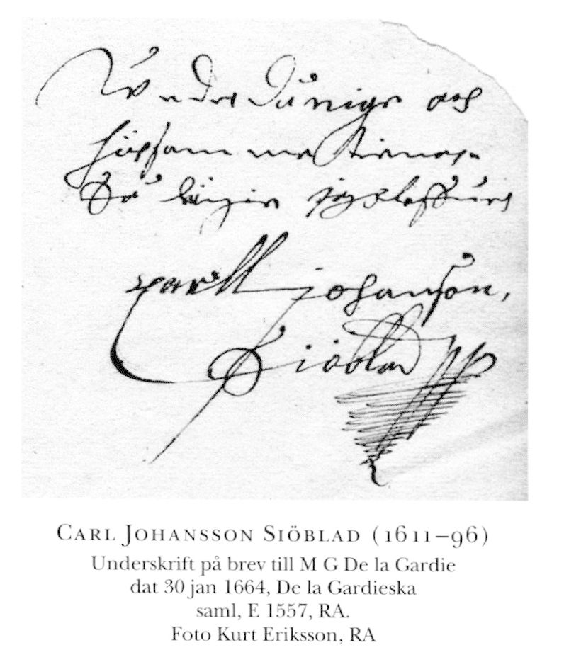 Nils Siöblad: RR 1610,1209 v, o maj-okt 1611, f 262 v, Biographica S 35, K 344 (skriv ull hertig Karl), Sandbergska saml FF 13166, E 3706 (skriv till Karl Karlsson Gyllenhielm) o Ericsbergsarkivets autografsaml, RA; Almquist, a a 1960; dens, Häradstingsprot:en före 1614 (1945), s 34 ff; AOSB 1:2 (1896); Biographiskt lexicon öfver namnkunnige sv män, 14; Björkman, a a, s 430; C Callmer, Sv studenter i Wittenberg (1976); dens, d:o i Rostock 1419-1828 (1988); Fortifik, 1 (1902); Frälseg 2:1-4:3 (1934-76); H Gillingstam, Den sv adelns antagande av släktnamn (HT 1964), s 48; Gyllenhjelm, a a, s 293; Lags o doms; Palme, a a; SRA 1521-1718, 3, s 903, o 4, s 689 o 697; Stiernman, a a; Vejde, a a, särsk s 38.