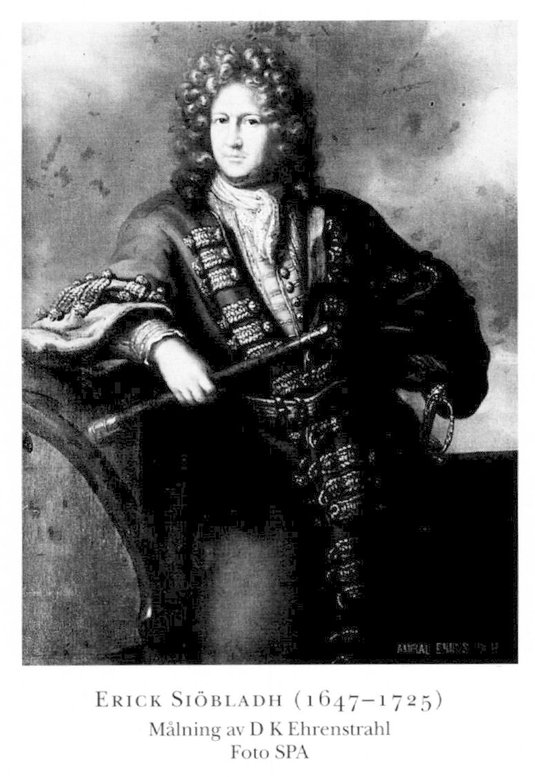 Hans son Erick C Siöbladh (1647–1725) studerade med sedermera professor Anders Spole som handledare i Uppsala från 1656 och fyrverkeri och navigation i Sthlm från 1661 samt i England 1664. Efter att i engelsk örlogstjänst 1664–73 ha befordrats till kapten återvände han till Sverige, där han 1676 befordrades till amiral och amiralitetsråd. Som befälhavare för en flotteskader från Gbg seglade S s å mot Elbes mynning för att söka undsätta det belägrade Stade, men innan han kunnat ingripa, hade Stade kapitulerat (jfr bd 19, s 366). 1677 blev hans eskader i det närmaste tillintetgjord av en överlägsen dansk sjöstyrka mellan Lolland och Falster, varvid han blev tillfångatagen men redan efter ett par månader utväxlad. 1678 undersökte S tillsammans med amirallöjtnanten Gustaf Adolph Sparre möjligheten att förlägga en flotta till blekingeskären, vilket väsentligt bidrog till beslutet att förlägga den sv flottans huvudstation till denna trakt, där Karlskrona anlades 1680. Då Blekinge 1683 skildes från Kalmar län, blev S den förste landshövdingen i Karlskrona. Där kom han i konflikt med handelsborgmästaren och kronobefallningsmannen Blasius König, som han beskyllde för vårdslös räkenskapsföring och fråntog befallningsmannatjänsten, i vilken denne återinsattes av K M:t 1687. 1700 förflyttades S till Gbg, där han fick titeln guvernör och även skulle vara befälhavare för den ännu ej fullt organiserade örlogseskadern. Liksom i Blekinge var han där driftig och energisk, inte minst när det gällde att hävda enväldets administrativa grundsatser, och han uppträdde med en myndighet som kunde urarta till hänsynslöshet och brist på respekt för borgerskapet. 1710 tillsatte rådsregeringen en kommission för undersökning av "egennyttigheter i landsorten" , vars verksamhet utsträcktes även till S:s guvernement (jfr bd 9, s 185), delvis till följd av hans motståndares agitation (jfr bd 11, s 146). Han suspenderades 1711 (jfr bd 18, s 93) och dömdes till döden, men straffet mildrades till fängslande. S benådades 1718 och frigavs 1719.