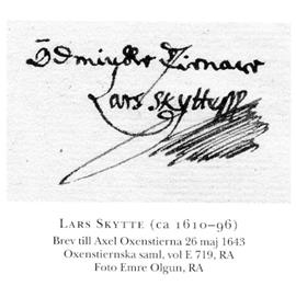 Hans son Lasse S (d 1634) var borgmästare i Nyköping, då han 1614 utnämndes till assessor i Svea hovrätt, en post han innehade till 1625. Åtminstone 1622-31 var han (under) ståthållare på Sthlms slott liksom även under en period ståthållare på Uppsala slott. 1623 utsågs han till vice guvernör vid Handelskompaniet. S hade adlats 1619, och hans ätt benämns på Riddarhuset Skytte af Sätra efter S:s sätesgård Sätra, då i Brännkyrka, Sth.