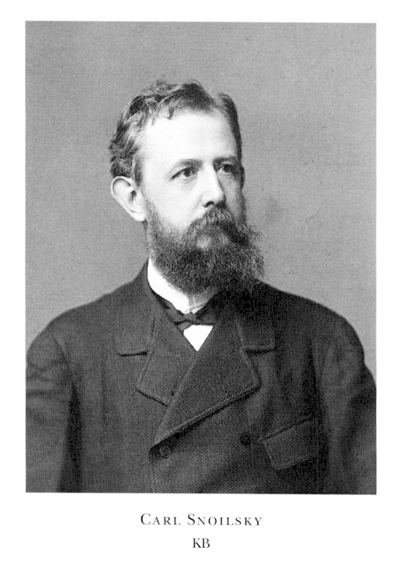 Snoilsky, Carl Johan Gustaf, f 8 sept 1841 i Sthlm, Klara, d 19 maj 1903 där, Hedv El. Föräldrar: justitierådet greve Nils S o statsfrun frih Sigrid Fredrika Juliana Baner. Elev vid Klara högre lärdomsskola, Sthlm, aug 50–juni 57, vid Lyceum där ht 57–vt 60, studentex vid UU 18 maj 60, inskr där 21 maj 60, kansliex där 27 maj 64, e o kanslist i Finansdep 20 juni 64, vistades i Italien o Spanien 64–65, attaché vid sv legationen i Paris 17 juni 65, andre sekr vid UD i Sthlm 27 sept 66, förste sekr 6 mars 74, chargé d'affaires i Khvn aug–nov 75, exp:sekr o chef för politiska avd 10 mars 76, kansliråd 8 nov 78 (tjänstl från 5 juni 79), avsked ur tjänsten 11 juli 79, allt vid UD, arkivarie vid K M:ts orden 29 april 76–24 nov 79, vistades i Florens 80–82 o i Dresden 82–90, överbibliotekarie i KB från 10 okt 90, ordf i Sveriges förf:fören 93–01. – LSA 76 (led av dess Nobelkomm från 00), fil hedersdr vid UU 6 sept 93, HedLVHAA 95, HedLVVS 96.