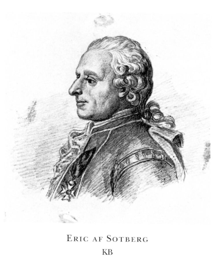 af Sotberg, Eric, före adl Sotberg, f 26 maj (g st) 1724 i Vadstena, d 30 dec 1781 i Sthlm, Hovförs,[1] begr 7 jan 1782 i Sthlm, Jak o Joh. Föräldrar: handlanden o rådmannen Gustaf Sotberg o Christina Göthe. Elev vid Linköpings gymn 38, inskr vid UU 3 febr 44, mag 55, doc i litt:hist 58–61, allt vid UU, lektor vid Amiralitetskadettskolan i Karlskrona 61 (Amiralitetskoll:s fullm 62)–70 (tjänsd från 65), informator för prinsessan Sophia Albertina (ovan) 28 okt 65–nov 75, assessors titel 13 nov 65, lagmans titel 9 maj 69, adl 29 maj 72 (introd 75), Vitterhetsakademiens sekr från 25 jan 73, kansliråds titel 14 jan 78. – Led av Vitterhetsakademien 73. – Ogift.