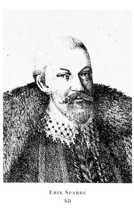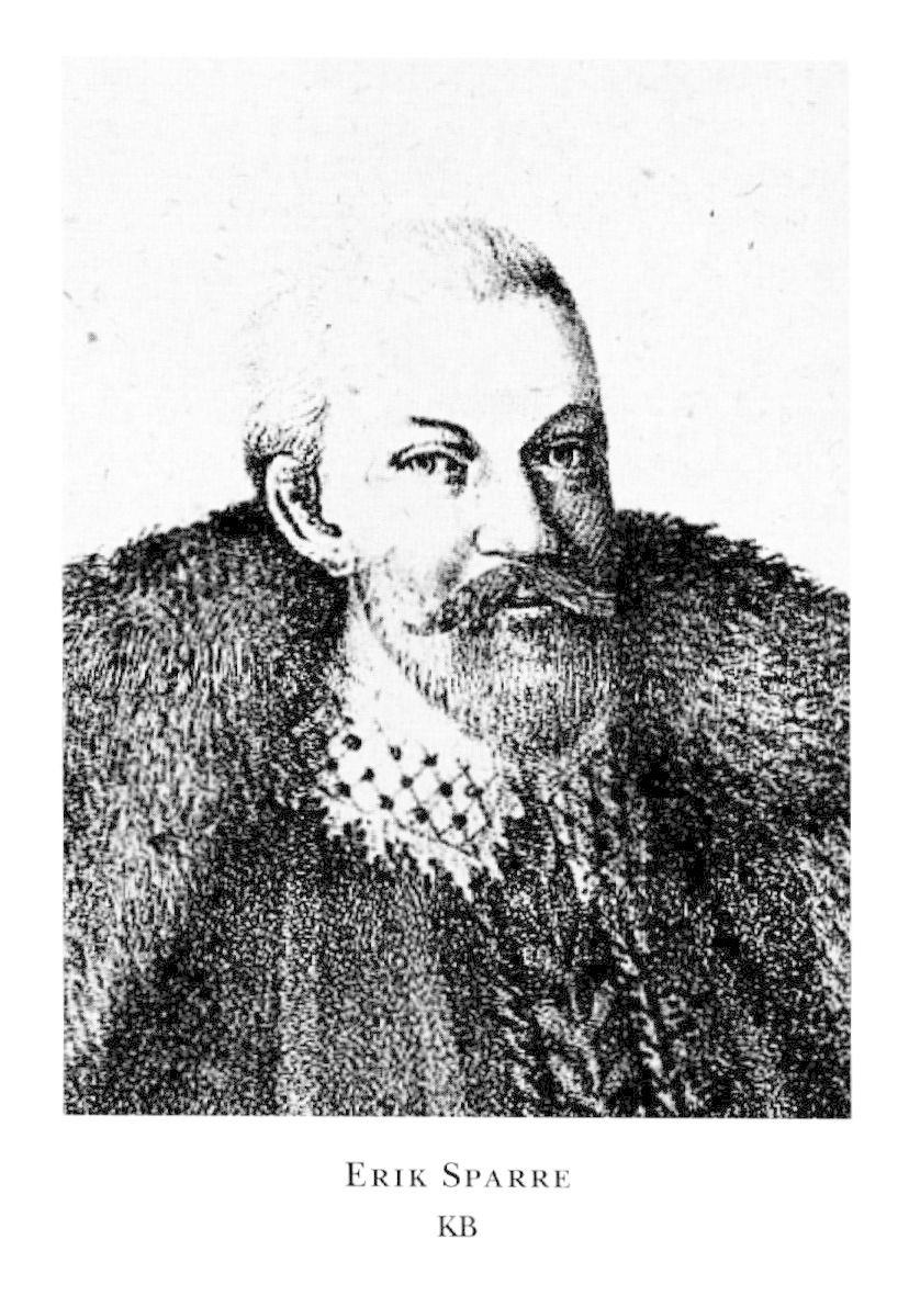 1 Sparre, Erik, f 13 juli 1550 i Öja, Söd (faderns uppg, se Chronicon genealogicum, s 47), d 20 mars 1600 i Linköping. Föräldrar: riksrådet Lars Siggesson (S; s 699) o Brita Turesdtr (Trolle). Riddare något av åren 69 (Acta ang riddersket o adeln; jfr Löfqvist)–75 (STb 1568–75), studerade utrikes 69–73, inskr vid univ i Frankfurt an der Oder 70, hovmästare 74, v kansler 75, kommissarie vid underhandl:arna med Danmark 16 mars 75, riksråd från mellan 26 juli 75 o 6 febr 76 (SRA 2, s 541)–19 febr 90, legat till tysk-romerske kejsaren o greven av Ostfriesland 21 aug 75, lagman i Västmanland o Dalarna 76–90, kommissarie vid underhandl:arna med Danmark 29 aug 80, legat till Mecklenburg 81, ståth i Västmanland, Bergslagen o Dalarna 82–sept 89, häradsh i Västerrekarne, Södermanland, 82–83,88–90 o 94–97, skotsk baron 1 mars 83, legat till England 83, ståth på Sthlms slott (tills m sin svärfar) 86, legat till Polen 87, åter riksråd från 93, rikskansler från 93, åter ståth o lagman över Västmanland, Bergslagen o Dalarna 14 juli 94–mars 97, landsflyktig i Danmark o Polen våren 97–juni 98, fängslad sept 98, dömd till döden 17 mars 00.