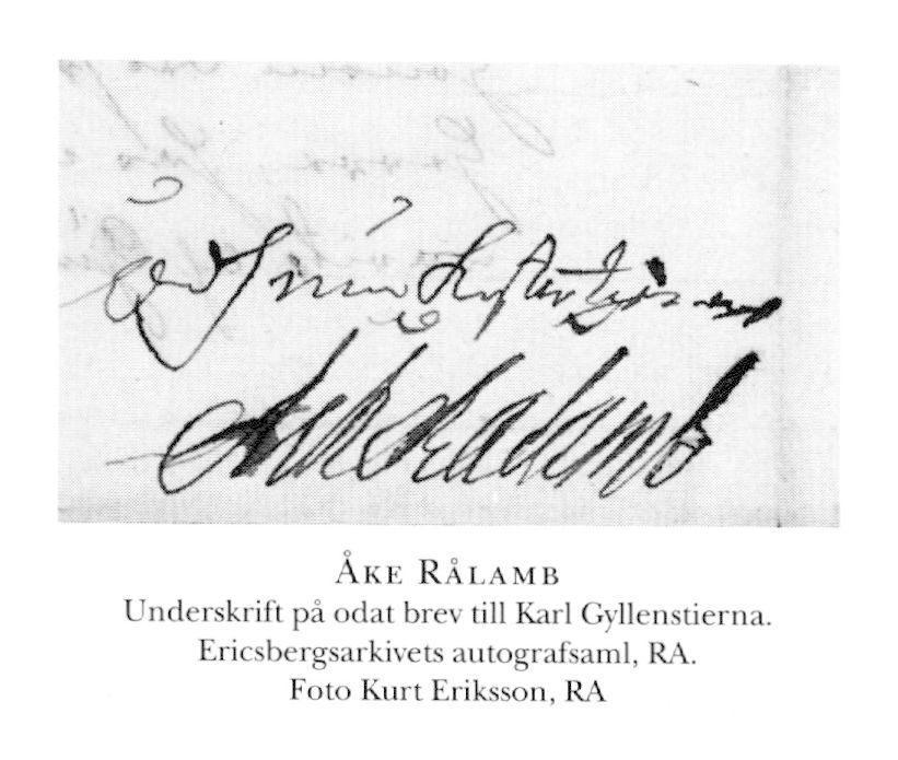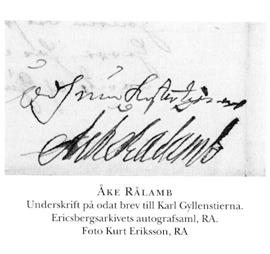 2 Rålamb, Åke, son till R 1 i hans första g, fl april 1651 i Almunge, Upps (RS 180), d 25 sept 1718 (RS 180) i Sthlm (bet för be-gravn 26 sept där, Klara). Inskr vid UU 9 mars 61, kapten vid Livg 6 sept 75–79, överstelöjtn:s titel o karaktär 16 dec 76, värvningsansvarig vid Livg 29 okt 01–09, överstes karaktär 3 juli 11. Förf.
