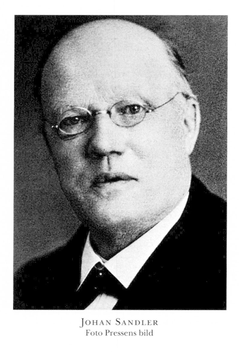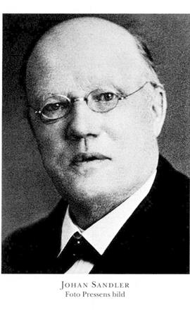 1 Sandler (tidigare Eriksson), Johan, f 21 sept 1858 i Sunne, Jämtl, d 29 maj 1929 i Sthlm, Kungsh. Föräldrar: torparen o skomakaren Erik Jonsson o Britta Larsdtr. Inskr vid folkskoleseminariet i Härnösand 29 aug 76, utex där 28 maj 79, organistex 80, folkskollär o organist i Ytterlännäs, Vnl, 80, i Torsåker där 82–13, förest för Hola folkhögskola där ht 96–22, ordf i kommunalstämman där 08–21, led av Västernorrlands läns landsting 10–18, av FK 13–18 (led av FK:s första tillf utsk 13–16), ledare för ambulerande folkhögskolekurser 22–25, tf studieledare i Arbetarnas bildn:förb (ABF) 1 okt 25, riksstudieledare där från 1 juni 26.