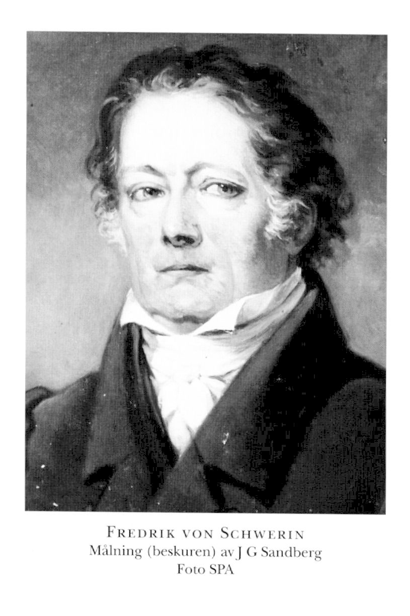 1 von Schwerin, Fredrik Bogislaus, f 6 okt 1764 i Stralsund, S:t Nikolai, d 9 april 1834 i Sthlm, Klara. Föräldrar: riksrådet greve Jacob Philip v S o grev Charlotta Sofia Margareta v Bohlen. Kvartermästare vid Västgöta kavallerireg 11 sept 75, kornett där 6 juni 77, studerade vid militärakad i Berlin 77-80, sekundadjutant genom byte vid kavallerireg 25 april 80, studier vid akad i Strasbourg 81–82, adjutant vid reg 84–27 sept 85, studier vid UU 85–86, inskr där 16 sept 86, hovpredikant 1 sept 86, präst- o pastoralex i Linköping 12 okt 86, prästv där 15 okt 86, inskr vid univ i Göttingen dec 86, fil mag där 17 sept 87, deltog i riksdagarna 86, 89 o samtl 12–34 (led av allm besvärs- o ekon:utsk 12 urt, av förstärkta statsutsk 12 urt, 15 urt, 17/18 urt o 23, av förstärkta allm besvärs- o ekon:utsk samt förstärkta KU 15 urt, ordf i särsk utsk 15 urt, led av bevilln:utsk 17/18 urt, ordf i statsutsk 28/30), kh i Sala stad o landsförs från 19 febr 88, kontraktsprost där 2 maj 88, TD vid UU 7 okt 09, led av Västmanlands läns hushålln:sällsk:s förvaltnutsk 15, av 1822 års finanskomm maj 22-febr 23, ordf i riksbanksfullm 13 aug 23, led av myntkomm 30–31. Polit o ekon skriftställare. – LVA 04–21, KorrespLLA 12, LLA 22, LPS 26.