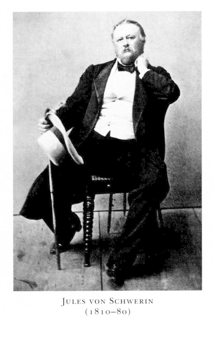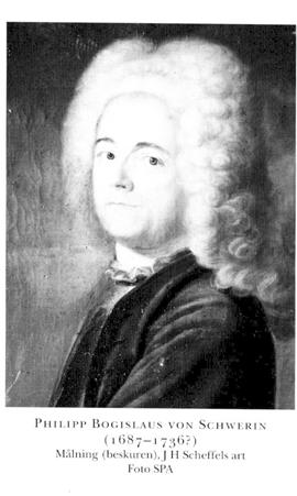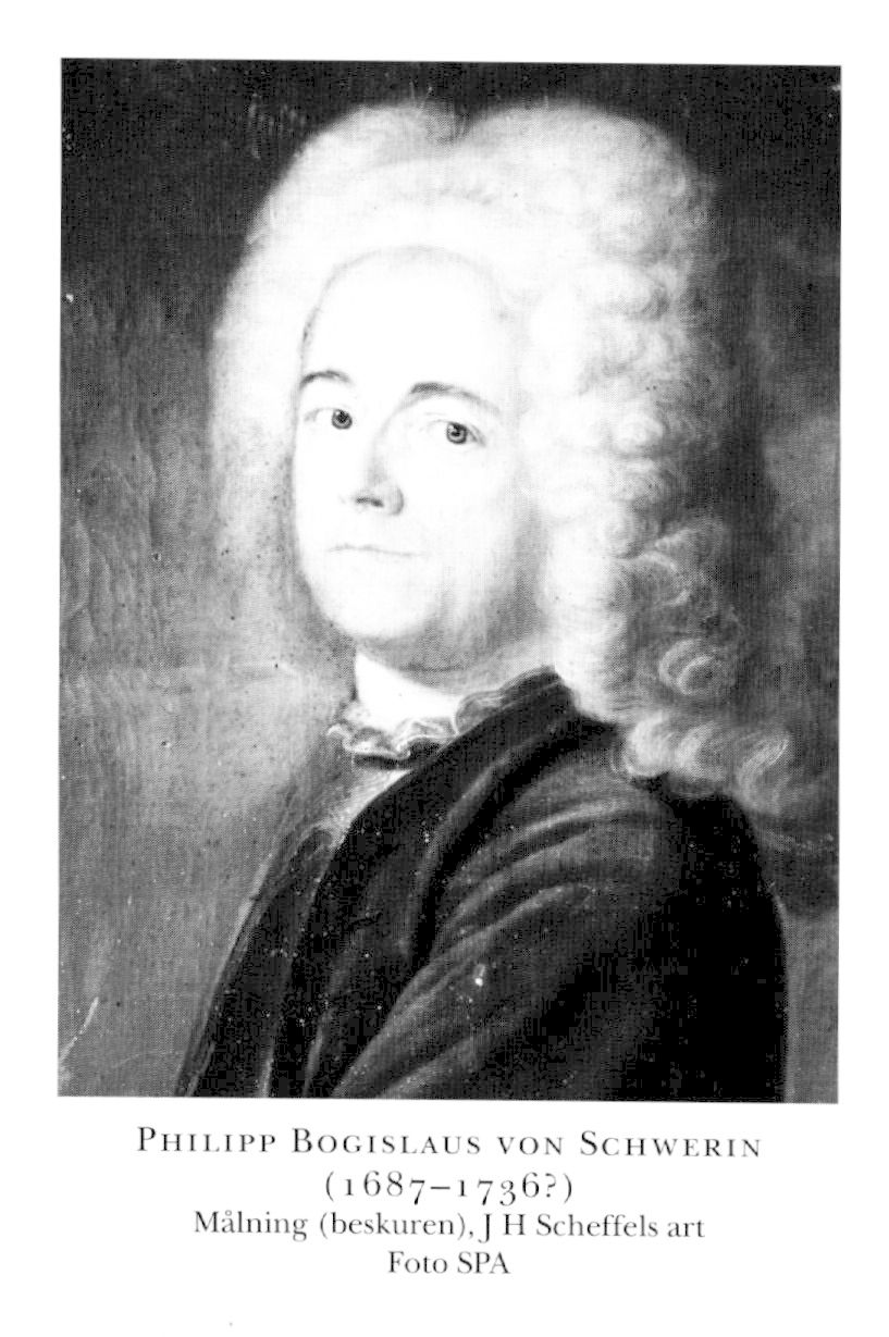 von Schwerin, adelssläkt härstammande från en Bernhard, 1178 belagd som fogde i grevskapet Schwerin i Mecklenburg, men sedan 1200-talet hemmahörig i Pommern, där den räknades till den slottsbesittande adeln. Enstaka medlemmar av släkten har redan tidigt haft sv förbindelser; drotsen Mathias Kettilmundssons (bd 25) hustru Aleydis tycks ha tillhört släkten och ägde, liksom en Otto Zwerin, sannolikt hennes bror, jord i Norby i Helga Trefaldighets församling utanför Uppsala (Beckman). Under 1600-talet återfinns medlemmar av släkten S i sv krigstjänst och som ingifta i sv adelssläkter. Företrädd på sv Riddarhuset blev den dock först vid 1700-talets början med Philipp Bogislaus v S (1687–1736?). Han var tidigast officer i preussisk och dansk tjänst men blev 1710 överste för ett bremiskt dragonregemente i sv tjänst. Under striderna kring Bremen 1712 föll han i dansk fångenskap. Frigiven 1713 återinträdde han i sv tjänst och deltog i försvaret av Stralsund. Han blev generalmajor 1715, föll s å i dansk fångenskap men återkom dll Sverige efter en rymning 1717. Följande år åtföljde S med sitt regemente Karl XII på det norska fälttåget; vid Fredrikshald var han bland de höga officerare som först nådde fram till kungen efter det dödande skottet. Ursprungligen räknad som en av Fredrik I:s gunstlingar, kom han med tiden att räknas till det hol-steinska partiet och antogs 1727 som generallöjtnant i rysk tjänst. Han skall under en kort tid i kejserlig tysk-romersk tjänst ha blivit utnämnd till fältmarskalkslöjtnant 1732 och dog några år senare som befälhavarare för den ryska armén i Ukraina. Han hade blivit sv friherre efter hemkomsten från fångenskapen i Danmark 1717 (introd 1719).