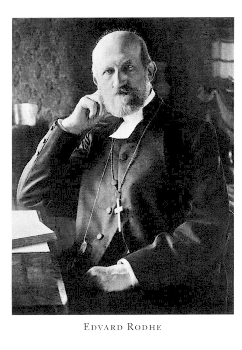 1 Rodhe, Edvard Herman, f 26 okt 1845 i Everöd, Krist, d 14 sept 1932 i Gbg, Domk. Föräldrar: kontraktsprosten Christian Wilhelm R o Cathrina Sophia Berling. Inskr vid LU 14 dec 61, FK 31 jan 70, disp 30 maj 71, FD 3 juni 71, e o biblioteksamanuens 6 maj 74–31 mars 80, TK 12 sept 77, allt vid LU, prästv o adjunkt i Lunds domkyrkoförs 12 okt 77, v pastor där 1 maj 79–30 april 81, led av stadsfullm i Lund 1 jan 78, pastoralex 25 okt 78, kh i Karlshamn 5 dec 79 (tilltr 1 maj 81), fängelsepredikant där 25 april 81, kontraktsprost i Listers o Bräkne kontrakt, Blek, 29 mars 82, kh i Norrköpings S:t Olai förs 12 dec 84 (tilltr 1 maj 85), tjänstgörande e o hovpredikant 28 sept 86, biskop i Gbgs stift 18 juni 88 (tilltr 90)–1 maj 29, prebendekh i Tölö, Hall, 18 juni 88 (tilltr 90)–1 maj 23, led av AK 92 urt93 o av FK 95-02 (led av tillf utsk 96-97 o 99, av särsk utsk 98, av KU 0002).  LVVS 89, TD vid UU 6 sept 93, HedLVVS 99.