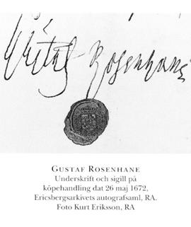 3 Rosenhane, Gustaf, bror till R 1 o R 2, f 19 maj 1619 i Husby-Oppunda, Söd (Meyer, s 34, o där anf källor), d 26 mars 1684 i Sthlm (Meyer, s 125 f, o där anf källor). Studier i Uppsala 26, inskr vid UU 4 dec 28, hovjunkare 35–36 o 40–42, utrikes studieresor sept 36–juli 40 (de första två åren med hovjunkares lön enl k brev 19 aug 36), deltog i riksdagarna 35, 42, 43, 44, 47, 49, 50, 52, 54, 55, 60, 64, 68, 72, 75, 76 o 80, samt i utskottsmötena 45, 51 o 58, assessor i Kammarkoll:s kammarrevision 12 juli 42, kammarråd o häradsh i Västerrekarne 2 juni 47, v president i Svea hovrätt 10 dec 50–58, häradsh i Hagunda, Oppunda o Villåttinge 29 april 53, frih 18 febr 54, direktor över kansliet o appellationsdomstolen i Preussen 18 maj 58 (tilltr ej), president i hovrätten i Dorpat 6 april 61 (tilltr ej), häradsh i Danderyd, Färentuna, Seminghundra, Sjuhundra, Vallentuna o Åkers skeppslag 2 maj 72, ordf i kommissionen i Hälsingland ang trolldomsväsendet 23 okt 72–73. – Ogift.