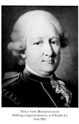 4 von Rosenstein, Nils, son till R 1, f 1 dec (g st) 1752 i Uppsala, d 7 aug 1824 i Sthlm, Klara. Inskr vid UU 14 dec 53, testimonium academicum där 6 dec 71, hovjunkare 4 april 69, e o kanslist i Kanslikoll:exp 17 dec 71, kopist 2 mars 73, kanslist 25 febr 74–10 maj 75, registrator 7 nov 75, allt i Kanslikoll:exp, andre sekr i Kanslipresidentexp 12 okt 78, deltog i riksdagarna 78–15 (led av hemliga utsk 00, av KU 09–10), ambassadsekr i Paris 19 nov 82, guvernör för kronprins Gustav Adolf 1 nov 84–2 nov 95, kansliråds fullm 1 nov 84, kanslerssekr vid UU 21 nov 85–6 dec 99, landsh:s n h o v 2 nov 95, led av Rikets ärenders allm beredn o Beredn för Pommerska o Wismarska ärendena 1 nov 96, av komm för Krigsakad maj 97, av dir över Krigsakad vid Karlberg 10 juli 97, av Krigskoll:s instruktionsdep 4 april 05, tf statssekr i Ecklesiastikexp 12 juni 09–28 dec 22 (tjänstl från 8 febr 22), led av komm ang ny kansliordn juli–aug 09, av komm ang inrättande av ett inst för fältläk maj–dec 10, ordf i fattigvårdskomm juni 10–juni 21, led av uppfostringskomm jan 12–april 17, av komm ang den akad jurisdiktionen juni 17–okt 20, av komm ang ny prästvalsförordn juli 21–okt 22. – Led av Vitterhetsakad 82, LVHAA 86 (preses 92, 01–02, 12, 18–19), LSA 86 (ständig sekr från 5 april 86), LYA 88 (preses 89, 95 o 12), LPS 89, LLA 11, LSkS 15, jur utriusque hedersdr vid UU 15 juni 18. – Ogift.