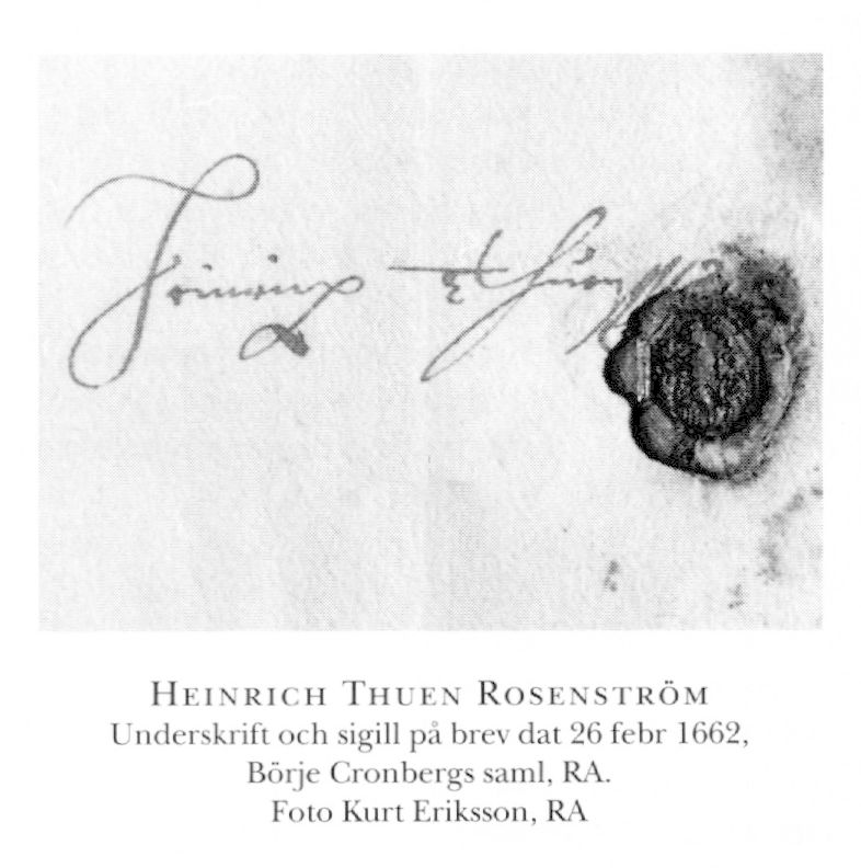 Rosenström, Henrik, före adl Thuen, f 1624 (skrift under begravn :vapen i Jakobs kyrka, se Sveriges kyrkor, Sthlm, bd 4, 1934) i Nyköping (Handelskoll:s prot 11 okt 1653, SSA), d 17 okt 1676 i Sthlm (skrift under begravn:vapen; bet för gravöppn 31 okt i Jak o Joh). Föräldrar: köpmannen Michael Thuen o Catharina Dankwardt. Erhöll burskap som grosshandlare i Sthlm 10 okt 53, e o kommissarie i Sthlms banco (Palmstruchska banken) omkr 60, i Kommerskoll 16 mars 65, led av myntkommissionen 18 sept 66, dir i Förnyade tjäruhandelskompaniet 67, adl 16 dec 72.