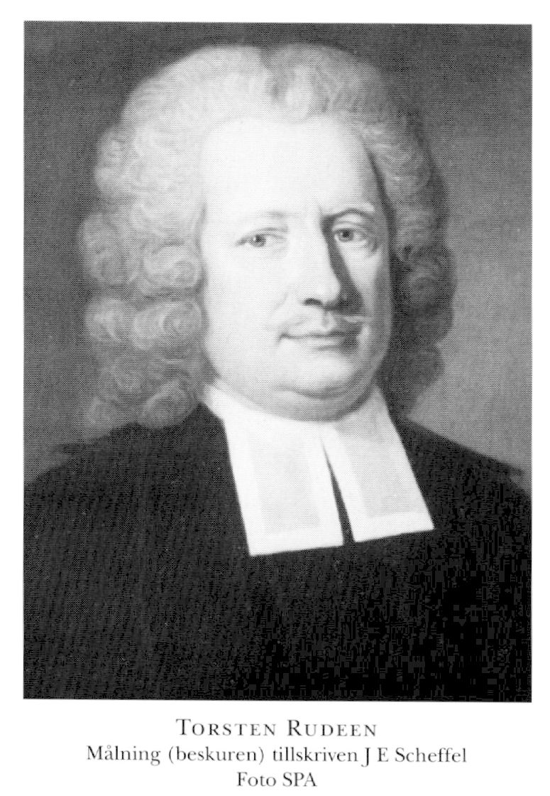 1 Rudeen, Torsten, f 9 mars 1661 i Lysvik, Värml (Rhyzelius), d 9 sept 1729 i Linköping. Föräldrar: komministern Haqvinus Torstani Rudenius o Christina Falk. Elev vid Karlstads skola 70, inskr vid UU 30 aug 78, disp pro gradu 24 nov 91, mag där 10 dec 91, poëseos prof vid Åbo akad 18 febr 92, kh i Pemar, Åbo o Björneb, 99, i Piikis där 01 (tilltr 1 maj 07), teol prof vid Åbo akad 28 sept 06, domprost o kh i Sv förs i Åbo med Nummis förs som annex 14 nov (tilltr 1 maj) 06, superintendent i Karlstad 11 mars 08 (tilltr juni 09), deltog i riksdagarna 10, 13–14, 19, 20, 23 o 26–27 (prästeståndets talman 23 o 26–27), biskop i Linköping från 24 sept 16 (tilltr 15 juni 17), TD 19 mars 19.