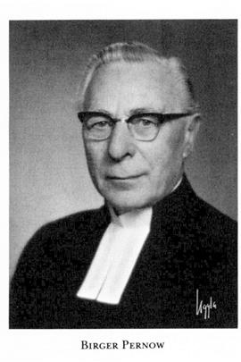 Pernow, Johannes Birger, f 24 juni 1888 i Matteröd, Krist, d 12 aug 1973 i Sthlm, Farsta. Föräldrar: hemmansägaren o kyrkvärden Bengt Persson o Christina Johansdtr. Studier vid Johannelunds missionsinst, Bromma, Sth, prästv för Luleå stift 31 maj 14, missiv till Burträsk, Dorotea o Åsele, samtl Vb, komminister där 11 aug 17 (tilltr 1 juni 19)10 jan 23, pastor vid Blasieholmskyrkan i Sthlm 10 jan 2330 sept 31, predikant vid Drottninghuset där 1 jan 2831 dec 58, tf missionsförest (från 1937 med titeln missionsdirektor) för Sv Israelsmissionen (SIM) 1 dec 30, ord 1 sept 311 juli 60, led av Intern Israelsmissionsrådet 32, v ordf 3547, ordf 4753, led av Ekumeniska flyktingkomm 4550, av Lutherska världsförb:s sv sektion 4657.