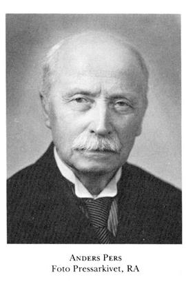 1 Pers, Anders, f 24 febr 1860 i Mora, Kopp, d 23 aug 1951 i Västerås. Föräldrar: lantbrukaren Pers Mats Matsson o Rull Kerstin Andersdtr. Småskollär 77–82, studerade vid Fornby folkhögsk, Stora Tuna, Kopp, 82–83, folkskollär 84-86, förvaltare i Grällsta, Kila, Vm, 87–01, led av Kila kommunalnämnd 92, ägare till o ansv utg av Vestmanlands läns tidn (VLT), Västerås, 98–48, huvudred där 08-48, led av styr för TU 02–51, ordf där 20–24, led av Västerås stadsfullm 05–06 o 13–38, av Västmanlands läns landsting 11–27, av FK 11–27 (led av andra tillf utsk 11, av jordbruksutsk 12-14B, av statsutsk 15–18 lagt, 19 lagt o 27, av första särsk utsk 17 o 18 urt, av tredje särsk utsk 18 lagt, av andra särsk utsk 19 urt, av första lagutsk 22, av bevilln:utsk 23–26, av särsk utsk 23), led av 1902 års löneregleringskomm febr 12–juni 18, av komm ang Strömsholms arrendejord maj–dec 12, sakk hos patentlagstiftmkomm juni–dec 12, led av komm ang Överintendentsämbetet okt 12–nov 15, av komm ang samfälld skog i Kopparbergs län juni 13–mars 14, av komm ang instruktion för Byggnadsstyr juli–dec 17, av komm ang läroverks- o landsbibi juli 18–febr 23, sakk ang omorg av dövstumundervisn:en juni 19–maj 21, led av komm ang häradshövdingars löner aug 19–jan 20, av komm ang kvinnors tillträde till statstjänst april 20–jan 23, av komm ang tidn:pappersbruken juli 20–jan 21, av högskolornas löneregleringskomm dec 20–juni 22, av komm ang idrottens främjande juni 21–maj 22, av komm ang tidmförordn okt 23–mars 24, ordf i styr för ab Radiotjänst maj–okt 24. – Iqml 37.