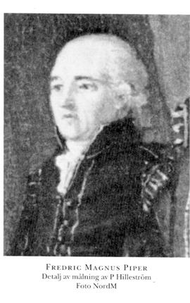 2 Piper, Fredric Magnus, f 3 april 1746 i Uppsala, d 22jan 1824 i Sthlm, Jak o Joh. Föräldrar: hovintendenten Gabriel Magnus P o Catharina Axberg. Inskr vid UU 8 dec 46, studerade matematik o hydrostatik där 6466, ingenjörs- och arkitekturstudier vid kanal- o slussbygget i Trollhättan, vid örlogsvarvets dockbygge i Karlskrona o Ritarakad i Sthlm 6771, ämnessven i VA 13 mars 71, konduktör vid Överintendentsämb 18 sept 72, studerade i England 7374, erhöll resepension från Slottsbyggnadsdir 23 nov 74, studerade i Paris 7475, i Rom 7578 o i England 79-80, hovintendent 27 nov 80, dir för undervisn:en i byggnadskonst vid FrKA 21 maj 99, tf överintendent 20 mars 03 (Biographica)5 maj 05.  LFrKA 83 (v preses 95, tf preses 0305).