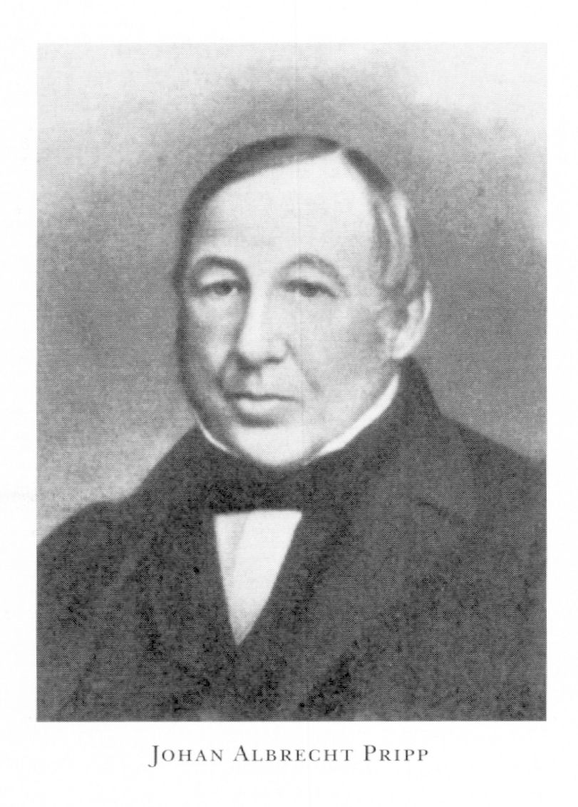 Pripp, Johan Albrecht, f 27 dec 1795 i Gbg, Kristine, d 8 mars 1865 där, ibid. Föräldrar: handlanden, sedermera klockaren Petter Jacob P o Maria Margareta Svensson. Elev vid Tyska skolan i Gbg 04, bodgosse hos handlanden o bryggaren F Svanander 1 okt 10, handelsbokhållare där, grundade o ledde bryggeriet J A Pripp (från 59 J A Pripp & Son) 28–62, burskap som bryggeriidkare 13 dec 33, led av kommissionen för uttaxering av bidr till fattigvården m fl inrättn:ar 37–44 o 52–53, en av föreståndarna för Gbg:s fattighus 38–58, ålderman i Bryggaregillet 40, led av komm ang fastighetsförsäkring i Städernas allm brandstodsbolag 42–58, av Borgerskapets äldste 43–58, allt i Gbg. – Medl av bl a Royal Bachelors' Club 39.