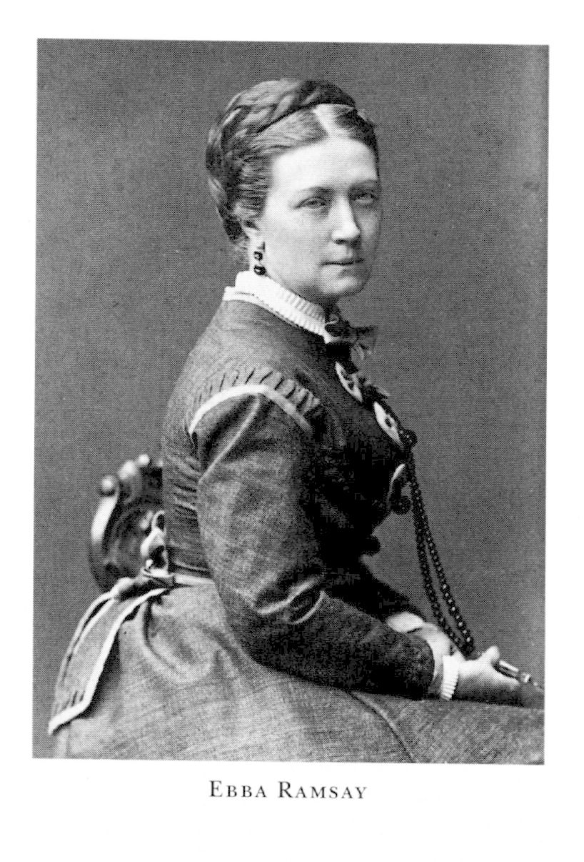 Ramsay, Ebba Gustava, f 1 okt 1828 i Sthlm, Nik, d 29 okt 1922 i Jönköping, Sofia. Föräldrar: tulldistriktschefen Wilhelm Svedin Karström (bd 20, s 774) o Carolina Catharina Almqvist. Filantropiskt verksam i Sthlm, Gbg o Jönköping, red för Sv söndagsskole-bibliotek 72, Gbgs Barn-tidn 73, grundade hem för vanföra barn (Wilhelmsro) 74, förf, översättare.