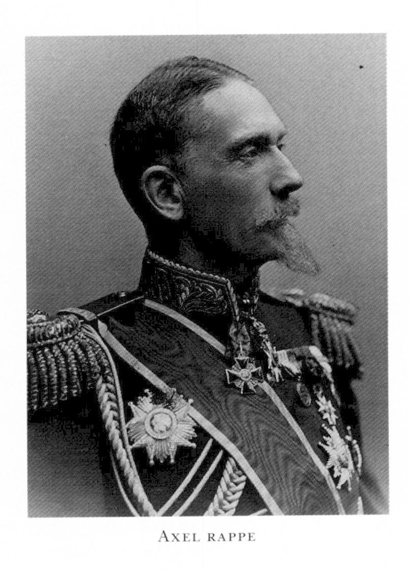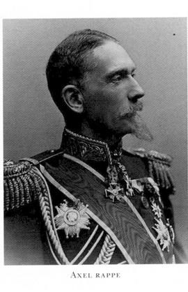 3 Rappe, Axel Emil, kusin till R 2, f 2 okt 1838 i Arby, Kalm, d 18 dec 1918 i Sthlm, Hedv El. Föräldrar: landshövdingen frih Axel Ludvig R o Lisette Emilia Augusta Björnstjerna. Elev vid Uppsala katedralskola, studentex vid UU 19 maj 57, inskr där 22 maj 57, kansliex där vt 60, underofficer vid Upplands reg 16 febr 58, officersex 5 o 8 mars 59, underlöjtn i Upplands reg 13 juli 59, vid reg 9 maj 60, elev vid H artillerilärov 63, löjtn 8 sept 63, generalstabsofficer 23 maj 65, deltog i riksdagen 1865–66, kapten i armén 29 dec 70, tjänstg vid franska armén 70–72, sekr i komm för granskn av 1875 års härordn:förslag okt 73–april 74, stabsadjutant o kapten vid Generalstaben 19 dec 73, lär i krigskonst o krigshist vid Krigshögskolan 73–79, överadjutant o major vid Generalstaben 4 dec 74, sekr i komm för granskn av förslag till övergång till ny härordn 74-mars 75, överstelöjtn o förste major vid Bohusläns reg 18 april 79, led av lantförsvarskomm juni 80–juni 82, tf chef för Bohusläns reg 4 febr 81, överste i armén 6 maj 81, överste o chef för Bohusläns reg 7 juli 82, tf chef för Generalstaben 14 juli 82, generalmajor o chef för Generalstaben 30 dec 85, led av styr för Evangeliska fosterlands-stiftelsen 87, v ordf 99, ordf där 06–18, led av komm ang granskning av inskriptionerna på arméns fanor o standar 88–april 92, av fältförvaltn- o etappreglementeskomm okt 88–91, av neutralitetskomm dec 88-maj 90, v ordf i Allm försvarsfören:s verkst utsk 90, led av komm för granskn av härordn:förslaget ("generalskomm") nov 90–mars 91, statsråd o chef för Lantförsvarsdep 22 juni 92–27 okt 99, generallöjtn i armén 2 dec 92, led av komm för besvarandet av K M:t:s frågor rörande en härorganisation enligt 1901 års sammanjämkn:förslag maj 01, general i armén 4 dec 03–23 dec 15 (i generalitetets reserv från 3 nov 05), led av utrustn:kommissionen 16 nov 05, ordf där 20 juli 06–15, ordf i komm ang trofésaml i Riddarholmskyrkan juni 06–febr 07, ombud vid allm kyrkomötena 08 o 09, led av styr för Karolinska förb från 10. – LKrVA 73 (styresman 91–92 o 09–10), HedLÖS 90, serafimerriddare 1 dec 04.