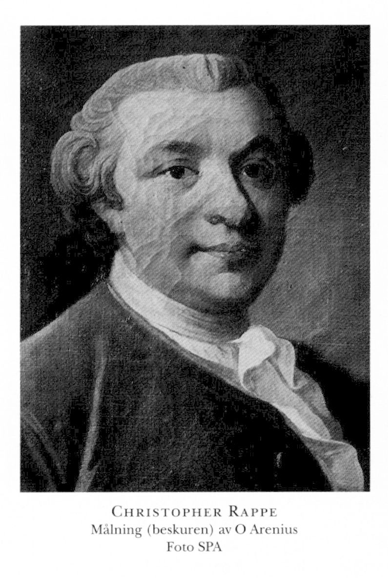 1 Rappe, Christopher Johan, f 12 jan 1719 i Söraby, Kron, d 20 sept 1776 i Åbo sv förs. Föräldrar: löjtnanten Erich R o Hedvig Leijoncrona. Inskr vid LU 24 juni 36, deltog i riksdagarna 38–39, 46–47, 51–52, 55–56, 60–62, 65–66, 69–70 o 71–72 (led bl a av SU 51–52, 60–62 o 69–70), auskultant i Göta hovrätt 5 okt 39, v häradsh 43, eo assessor i Åbo hovrätt 10 nov 47, assessor 10 maj 48, hovrättsråd där 14 okt 56, landsh i Åbo o Björneborgs län från 10 aug 69, frih 15 okt 71.