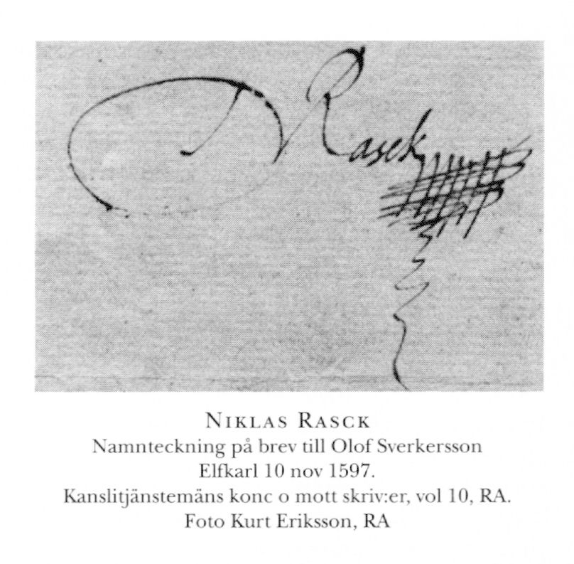 Rasck, Niklas Blasiusson, f 7 dec 1549 i Sthlm (enl osäker uppg i E 234, UUB), d hästen, efter 28 nov (B Hildebrand), 1598 i Danzig. Föräldrar: sekreteraren Blasius Olsson o Barbro Andersdtr. Inskr vid univ i Rostock okt 62, vid univ i Greifswald 2 nov 66, lär åt hertig Sigismund trol hösten 7375, sekr i K kansliet 8290, häradsh i Sotholm, Sth, 8594, deltog i förhandlingar med Moskva 85 o 9496, sv sekr i Sigismunds kansli från vintern 90.