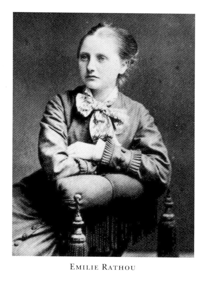 Rathou, Emilie, f 8 maj 1862 i Lösen, Blek, cl 12 okt 1948 i Sthlm, Bromma. Moder: Anna Maria Svensdtr. Elev vid folkskollär:sem i Kalmar 78, ex där 82, folkskollär i Hed, Vm, 83–84, resetalare för Sveriges storloge av IOGT 85–00, andre red för Dalmasen april–juli 90, ägare, red o utg av Dalmasen (från 92 Sv Medborgaren Dalmasen) 90–95, initiativtagare till Vita bandets Östermalmsfören i Sthlm 00, ordf där 00–35, v ordf i Riksfören Vita bandets centralstyr 02–03, sekr där 03–47, led av nykterhetskomm nov 11–aug 20, medred för tidskr Vita bandet 13, red där från 22, generalsekr o led av arbetsutsk inom Förbudsvännernas rikskomm 21–22, ordf i Centralrådet för kvinnornas förbudsarb 21–47, i Nord kvinnoförb för alkoholfri kultur 26–47. – Iqml 18. – Ogift.
