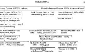 Olivecrona, släkt, härstammande från Thomas Perman (d 1693), vars bror skinnaren (körsnären) Hindrich Perman (d senast 1681) uppgavs vara född i Nyland, då han fick burskap i Sthlm 1670. Enligt en obestyrkt uppgift från omkr 1800 (Marks v Würtenberg) var Thomas Perman son till en bonde i Pernå by och sn, som ligger i Nyland. Thomas Perman hade redan 1665 fått burskap som lakanhandlare i Sthlm, varvid dock ej uppges, varifrån han kom. Han var också skeppsredare och 1678 och 1682 riksdagsman. 1683 var han en av de nio personer som på k befallning blev titulärrådmän, och månaden före sin död befordrades han till ordinarie rådman. Hans efterlämnade egendom, bl a sju fastigheter i staden, värderades till nära 110 000 dlr kmt. Hans yngste son, landssekreteraren i Älvsborgs län Samuel Perman (1687–1743), blev stamfar för en släktgren, som främst är känd genom överläkaren professor Einar Perman (1893–1976).