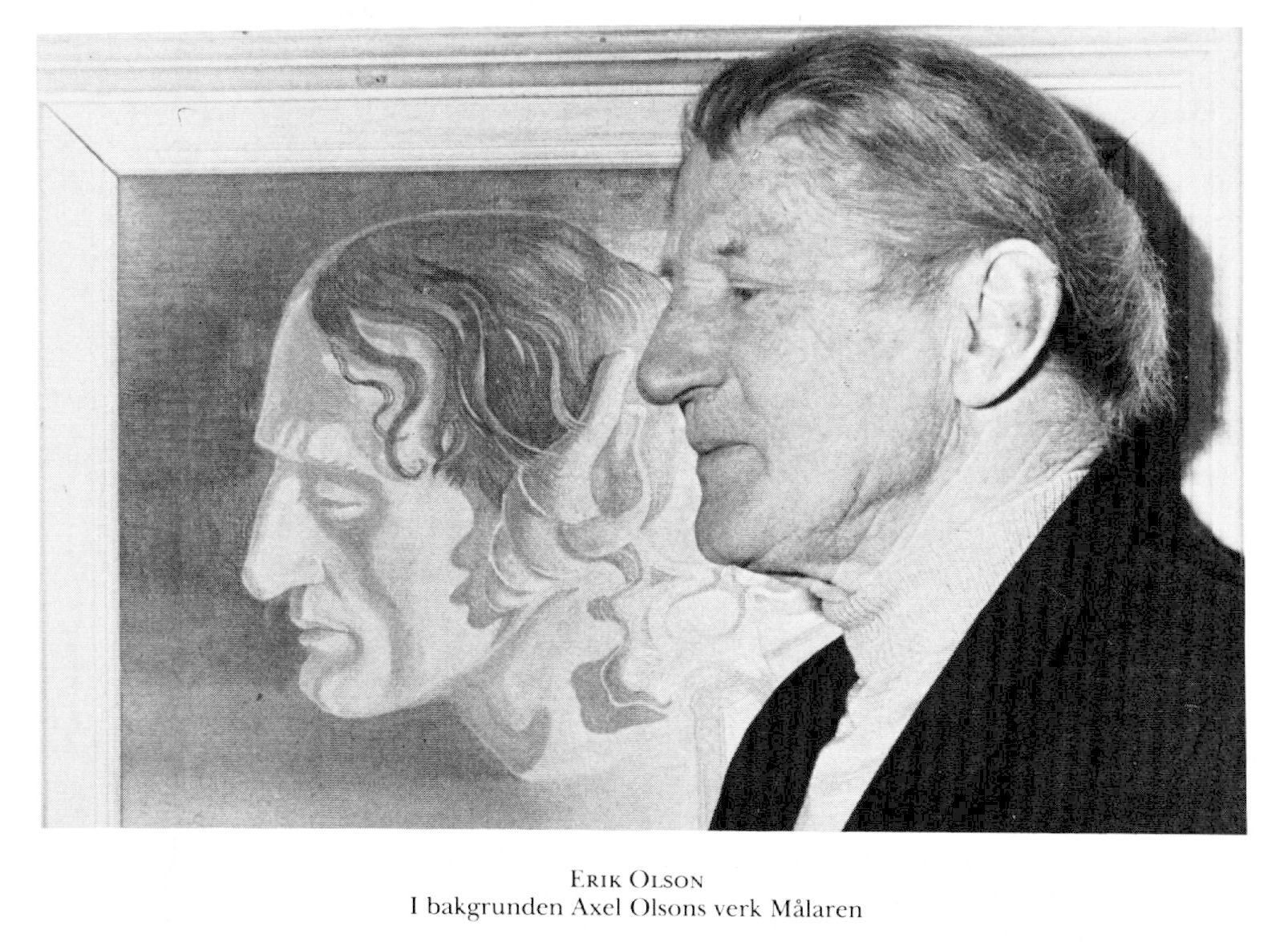 Et digt til mit billede (Konkretion, interskandinavisk tidsskrift for kunsten af i dag, udg og ansv red: v bjerke-petersen, nr 1–6, Khvn, Oslo & Sthlm (tr Khvn) 1935–36, s 24 f [i nr 1]). – [Uttalande] (Nutida svenskt måleri, d 2, Sthlm 19[35–]36 (omsl 1936–37), 4:o, s 452–455). – Varför jag blev katolik? (Varför jag blev katolik. En saml inlägg, red: S Stolpe, Sthlm 1955, s 86-88). – Altartavlan i Rydö kapell (D Wokander, Rydöbruks kapell 1922–72 [omsl], Rydö-bruk 1972, s 18 f). – [Självbiogr förord] (Erik Olson [utställning, Hallands museum 20 juni – 29 aug 1976, katalog], Halmstad u å, 4:o, s 3 1). – Vad kan bilderna i kyrkan säga oss? (En liten orientering i Trefaldighetskyrkan). U o o å [duplic]. (8) s. [Undert Halmstad 14/6 1981.] -"Ögats porträtt". Improviserad betraktelse vid öppnandet av Axel Olsons utställning i Mjällby konstgård den 11 juli 1982 (Hallandsposten, 1982, Halmstad, 21/7, s 2). – [Dagboks- o brevutdrag] (Halmstad – Berlin – Paris, målarresa genom 20-talet ..., [red: V Bosson,] Halmstad 1984). – Ur en målares dagbok. Några opublic arbetsnoteringar ... Ur E Olsons dagbok 1938–48 (Liljevalchs katalog nr 396. Halmstadgruppen 60 år: Halmstad – Berlin – Paris – Halmstad, Liljevalchs konsthall 7 april – 4 juni 1989, Sthlm 1989, 4:o, s 35–49).