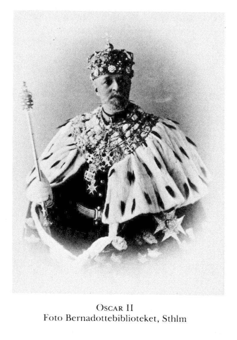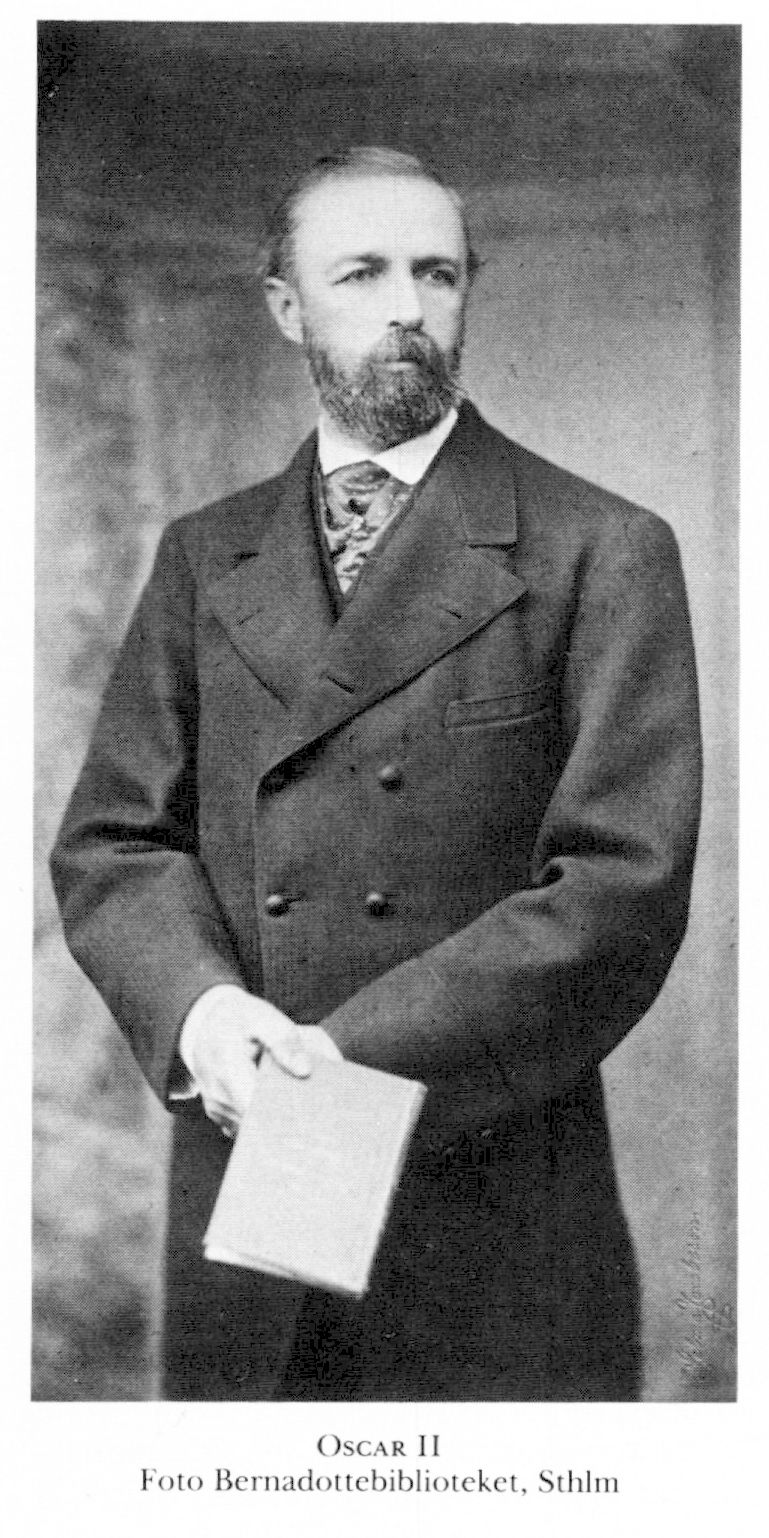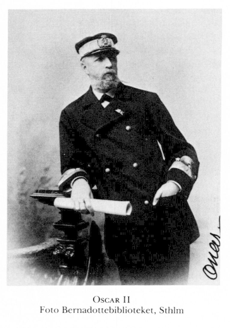 Oscar II (Oscar Fredrik), f 21 jan 1829 på Sthlms slott, d 8 dec 1907 där. Föräldrar: konung Oscar I o Josefina av Leuchtenberg. Erhöll vid födseln titeln hertig av Östergötland, sjöofficersex 19 juni 45, kapten i flottan 1 febr 50, kommendörkapten 19 april 53, led av komm ang sjökrigsundervisn dec 53–mars 54, kommendör 17 jan 55, konteramiral 3 april 56, viceamiral i flottan o generallöjtn i armén 1 dec 58, ordf i komm ang Sthlms befästande nov 64–aug 65, i militärlärov:kommissionen sept 65–juli 66, Sveriges o Norges konung 18 sept 72, krönt i Sthlms storkyrka 12 maj 73, i Trondheims domkyrka 18 juli 73, abdikerade som Norges konung 26 okt 05.