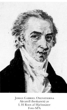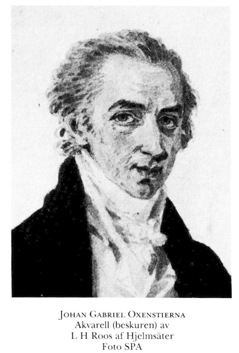 10 Oxenstierna, Johan Gabriel, brorsons sonson till O 8, f 19 juli 1750 i V Vingåker, Söd, d 29 juli 1818 i Sthlm, Klara. Föräldrar: generalmajoren greve George (Jöran) O o grev Sara Gyllenborg. Inskr vid UU 11 okt 62, hovjunkare 66, kansliex vid UU 67, eo tjänsteman i K kansliet 67, kanslist där 68, kanslijunkare i kansliets presidentskontor jan 69, tf kommissionssekr i Wien sept 70, ord 72, kammarherre hos Gustav III 19 aug 74, resa i diplomatiska uppdrag till Tyskland 78, deltog i riksdagarna 78, 09, 10 o 15 (ordf i ekonomi- o besvärsutsk 10, i riddarhusutsk 15), en av rikets herrar 1 sept 82, överstekammarjunkare 26 sept 83, eo led av Kanslikoll o av pommerska o wismarska beredn 13 febr 85, riksråd 12 april 86—15 maj 89, tf kanslipresident 86—14 nov 89 (tji från juni 89), överstemarskalk hos drottning Sofia Magdalena 15 maj 89, led av tf regeringen 90 o maj—aug 91, tf riksmarskalk 10 jan 92, ord 25 febr 92-20 juli 01 (tjänstebefriad maj 94—nov 96), led av tf regeringen 17 mars 92, av allm statsberedn 2 juli 92, av regeringen under Gustav IV Adolfs resor 98 o 99, kansler vid K M:ts orden från 18 mars 02, led av Kanslersgillet från 6 april 02. Skald. — LVVS 76, LSA 86, HedLVHAA 86 (preses 93, 98, 00 o 05), LPS 88, serafimerriddare 22 nov 90, LMA 98, LHVS 04, LVA 04 (preses 16).