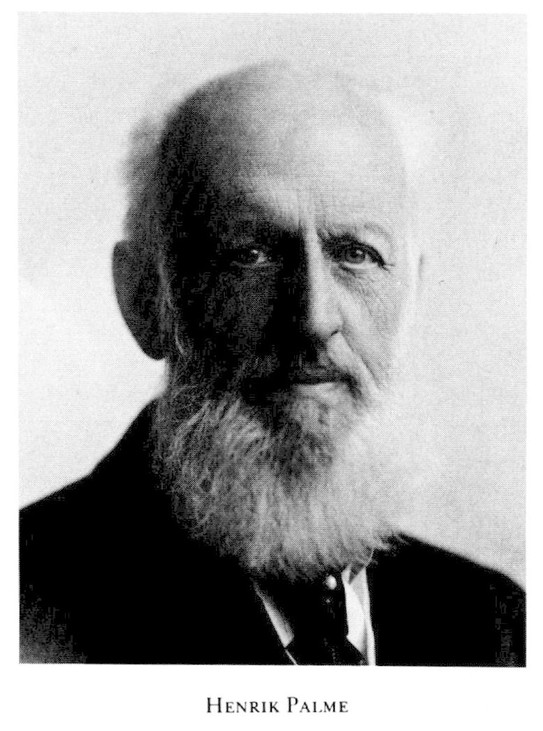 1 Palme, Johan Henrik, f 16 sept 1841 i Kalmar, d 9 maj 1932 i Merano, Italien (enl db för Danderyd, Sth). Föräldrar: landssekreteraren o lagmannen Christian Adolph P o Sophie Louise Nordenankar. Inskr vid LU 15 dec 56, vid UU 11 febr 59, kameralex där 60, notarie i borgarståndet vid riksdagarna 62—63 (från 14 mars 63) o 65—66, i bevilln:utsk vid riksdagen 67, kanslist i särsk utsk vid riksdagen 68, VD i Sthlms intecknings garanti ab (SIGAB) 69—19, ordf i styr där 07—30, led av stadsfullm i Sthlm 72-79 o 82—84 (led av beredn:utsk 77—79), led av förvaltn:råd o dir för ab Sthlms byggnadsfören 73—77, led av komm för detta bolags avveckl 77—80, av styr förj & C G Bolinders mek verkstads ab 73—05, ordf där till 05, led av styr för Nationalekon fören 77—97, sekr 77—81, ordf där 87 o 94, led av komm ang den ekon ställn i landet mars 86—dec 87, ordf i styr för ab Sthlms bryggerier 89—91, VD o ordf i styr för Djursholms ab 89—91, ordf i styr för Nässjö—Oskarshamns nya järnvägs ab 98—30, led av styr för Sv bankfören 10, av bankfören:s förtroenderåd 12. — LLA 88.