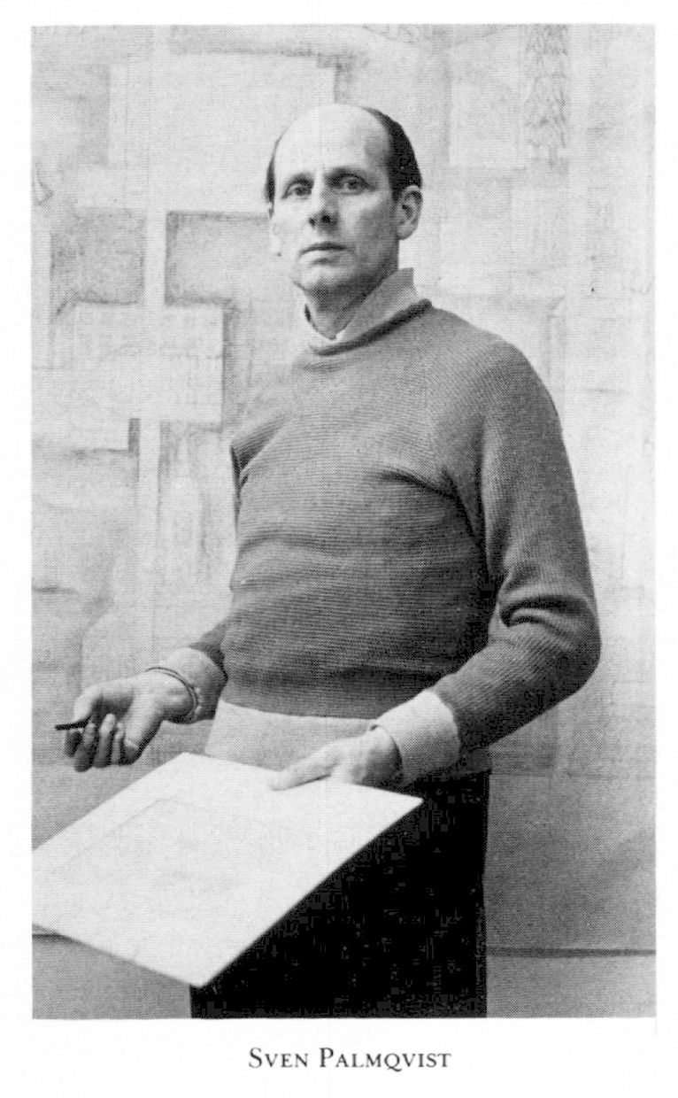 Palmqvist, Sven Ernst Robert, f 4 sept 1906 i Lenhovda, Kron, d 6 febr 1984 i Sthlm. Föräldrar: soldaten o torparen Sven Gustaf P o Ida Augusta Kristiansdtr. Studier vid gravörskolan i Orrefors, Kron, 27–31, anställd vid Orrefors glasbruk 28, studier vid Tekn skolan (Tekn afton- o söndagsskolan) i Sthlm 12 okt 32–34, vid Konsthögskolans avd för skulptur där 34–36, vid Académie Ranson i Paris 36–39, konstnärlig medarb vid Orrefors glasbruk 36–72. – Prins Eugen-medaljen 77.