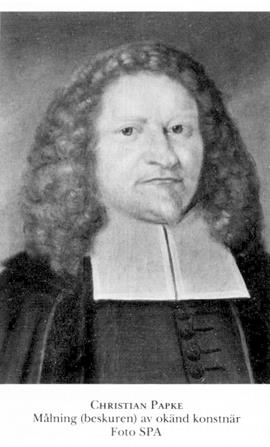 Papke, Christian, f 22 dec, dp 23 dec 1634 i Greifswald, S:t Nikolai, d 9 mars 1694 i Åhus, Krist. Föräldrar: svärdfejaren Herman P o Maria Koten. Inskr vid univ i Greifswald 18 maj 48, skolstudier i Anklam o Stettin, åter inskr i Greifswald 20 okt 54, prom mag där 62, inskr vid LU ht 69, teol adjunkt 70, prof i logik o metafysik 24 juni 72, även eo prof vid teol fak 12 dec 74, allt vid LU, kh ad interim i Stävie o Lackalänga, Malm, 4 juli 80, teol prof vid LU, tysk kh i Lund o "domprost" i Lunds stift 26 april 82, biskop i Lund o LU:s prokansler från 15 dec 88, biskopsvigd i Sthlms slottskyrka 31 jan 89, TD (absens) vid UU 3 mars 93, LU:s rektor ht 75 o ht 85, deltog i riksdagarna 89 (led av SU) o 93.