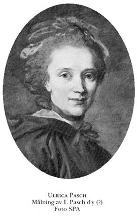 4 Pasch, Ulrica Fredrica, syster till P 3, dp 4 juli 1735 i Sthlm, Jak o Joh, d 2 april 1796 där, Ridd. Porträttmålare. — Led av Målar- o bildhuggarakad 12 aug 73. — Ogift.