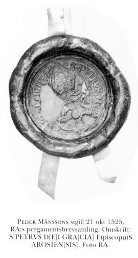Peder Månsson, trol f i Jönköping, d 17 maj 1534. Rektor för skolan i Vadstena o kaplan vid S:t Peters kyrka där, prästbroder i Vadstena kloster 6 juni 99, förest för Birgittahuset i Rom 8 nov 08—24, Dr jur där senast 5 mars 23, vald till biskop i Västerås 13 sept 23, erhöll påvlig konfirmation 27 april 24, biskopsinvigd i Rom 1 maj 24, riksråd 27 juli 24, även tf stiftschef i Uppsala 5 okt 26, förf.