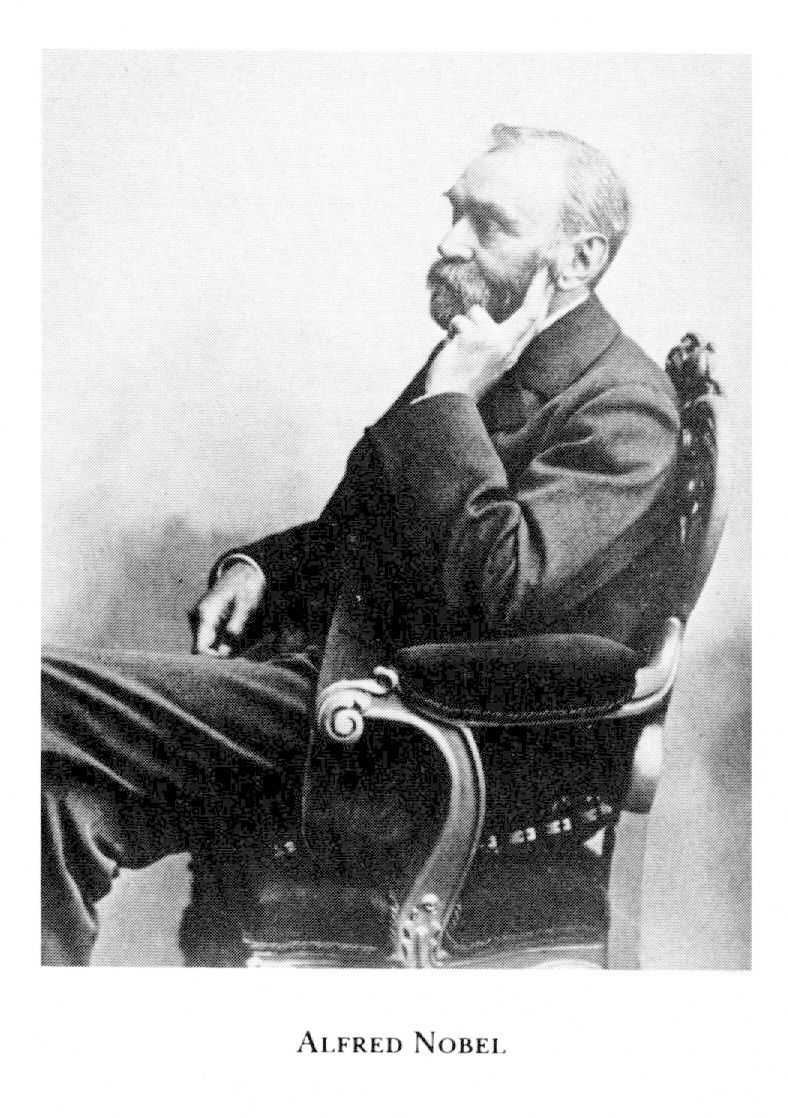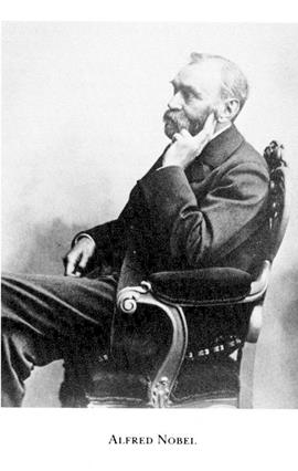 4 Nobel, Alfred Bernhard, bror till N 2 o N 3, f 21 okt 1833 i Sthlm, Jak o Joh, d 10 dec 1896 i San Remo, Italien. Elev vid Jakobs förs:s apologistskola i Sthlm 41, erhöll privatundervisn i S:t Petersburg 42–50, anställd vid faderns verkstad där 52–59, vid dennes verkstad i Sthlm 63, led av styr för Nitroglycerinab 22 okt 64, ordf i styr för ab Bofors-Gullspång 94, initiativtagare till, delägare i o led av styr för ett flertal sprängämnesbolag i Europa o USA. Uppfinnare, donator. – LVA 84, fil hedersdr vid UU 6 sept 93. – Ogift.