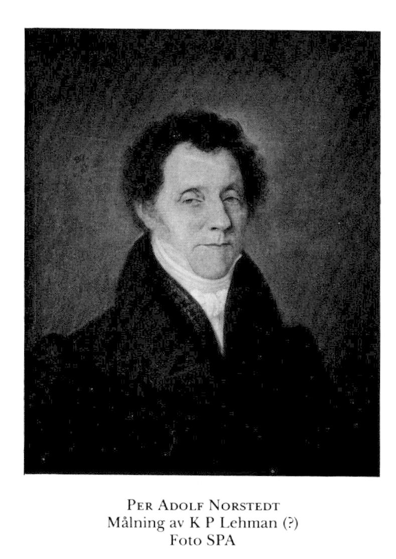1 Norstedt, Per Adolf, f 28 jan 1763 i Örebro (Örebro AI.:11, u 416), d 20 sept 1840 i Sthlm, Nik. Föräldrar: handlanden o rådmannen Lars N o Sara Elisabeth v Aken. Köpman i Örebro, rådman där 7 febr 91–april 94, led av borgarståndet vid riksdagen 92, erhöll ensamrätt till salubrygd i Örebro 95 o drev bryggerirörelse där 96–06, överdirs titel 11 jan 20, övertog Peter Lindhs (bd 23) tryckerirörelse o delar av hans förlagsrörelse i Sthlm 21, ledde verksamheten där (från 1 dec 23 under firmanamnet P A Norstedt & Söner) 21–28.