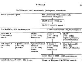 Nyblaeus, släkt, härstammande från skattebonden och fjärdingsmannen Olof Nilsson (d 1661) i (Södra) Nybble, Sköllersta, Ör, som var nämndeman från 1646 eller 1647 och blev far (Sköllersta P I:1) till kaplanen Sven N (d 1711, 81 år gammal) i Sköllersta. Den senare kallas (Sköllersta P I:1) farbror till kh Olof N (1668–1710) i Sköllersta, vilken kallade Sven N "patruus" (farbror) i sina självbiografiska anteckningar (tr Follén, s 510) och var son (Sköllersta C:2, f 13 v) till Erik Olofsson (d 1693, 60 år gammal) i (Södra) Nybble, som var nämndeman åtminstone från 1670 och riksdagsman 1680 och 1682.
