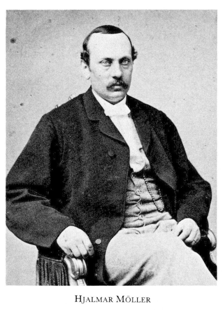 2 Möller, Hjalmar Anders Christian Olof, kusin till M 1, f 6 mars 1840 i Ystad, S:t Petri, d 12 okt 1910 i Lund, Domk. Föräldrar: postmästaren o titulärborgmästaren Lars Johan M o Sofia Charlotta Petersson. Anställd i B A Cronholms bokhandel i Malmö 55–64, övertog o drev H Langs bokhandel i Kristianstad 64–juli 86, led av stadsfullm där 68–86, av styr för Sparbanken där, av styr för Christianstads boktryckeri ab 73–99, drev Gleerupska univ:bokhandeln i Lund från 1 jan 86, en av stiftarna av Sv bokhandlarefören 93, ordf i fören:s skånska krets. G 30 maj 1866 i Kristianstad m Johanna Maria Winquist, f 6 april 1844 där, d 11 jan 1911 i Lund, Domk, dtr till kopparslagaren Johan W o Elna Jacobsson.
