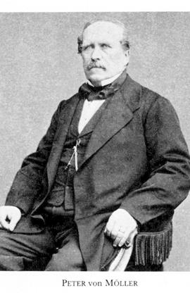 von Möller, Peter (före adl Möller), f 20 maj 1809 i Helsingborg, d 28 nov 1883 i Sthlm (enl db for Skummeslöv, Hall). Föräldrar: handl Jöns Lorentz Béen o Helena Maria Zoll o adopterad av sin faster Elisabet Maria Béen o kommerserådet Peter Möller. Genomgick herrnhutarskolan i Christiansfeld, Slesvig, 15–22, kadett vid Karlberg 9 maj 23, utex 20 nov 27, kornett vid Skånska husarreg 19 dec 27, arrendator på Skottorp, Skummeslöv, Hall, 33, ägare från 46, löjtn o andre adjutant vid Skånska husarreg 25 mars 34, avsked med ryttmästares nhov 12 juli 39, sekr i Hallands läns hushållmsällsk 45–59, v ordf 55, ordf från 60, led av komm ang ny bevillnrförordn maj 58–juli 59, adl 4 maj 60, deltog i riksdagarna 62–66 (led i bevillmutsk 62–63), led av FK från 67 (led i lagutsk 67–72, i särsk utsk 67, i KU från 73), led av komm ang ny lag rör vattenrätten mars 63–nov 64, v ordf i Hallands läns landsting 63, ordf 64–68, led av komm ang ordn av förvalta av statens fastigheter o ang upplåtande till nybyggen av mark i Norrland nov 75–maj 76. – LLA 42 (hed led 77), LVVS 58, LVA 66, LSkS 66, HedLVHAA 74.