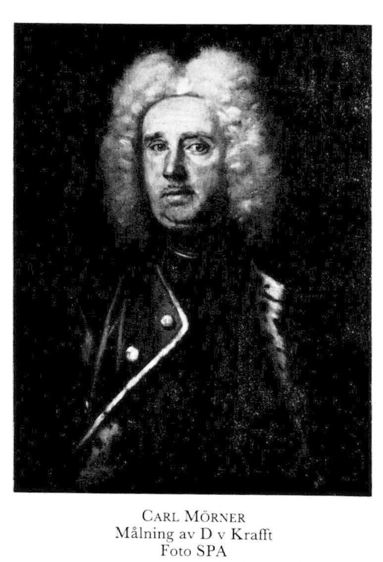 5 Mörner, Carl Gustaf, son till M 4, f 1658 (Orig:geneal) i Malmö (X 18), d 27 okt 1721 i Jönköping, Kristina. Ryttare vid änkedrottn:s livreg till häst 74, frih tills med fadern 5 aug 74, kornett vid nämnda reg 75, löjtn där 4 dec 76, ryttmästare vid Smålands kavallerireg 14 juli 77, kornett vid K M:ts livkompani 77, kaptenlöjtn där 78, löjtn vid K M:ts drabanter 21 juni 79, kaptenlöjtn där 1 mars 80, i fransk krigstjänst maj 91–92, överstelöjtn o chef för K M:ts drabanter 28 dec 93, överste för Östgöta kavallerireg 4 juni 95–04, generalmajor av kavalleriet 18 juli 00, generallöjtn av kavalleriet o mönsterherre i Sverige 9 jan 04, general av kavalleriet 5 jan 11, guvernör över Gbgs o Bohus län 23 febr 12, k råd 8 juni 16, generalguvernör över Gbgs o Bohus, Närkes o Värmlands, Hallands, Skaraborgs o Älvsborgs län 8 juni 16–19, greve 10 juni 16, fältmarskalk 1 jan 17, president i Göta hovrätt från 18 juni 19.