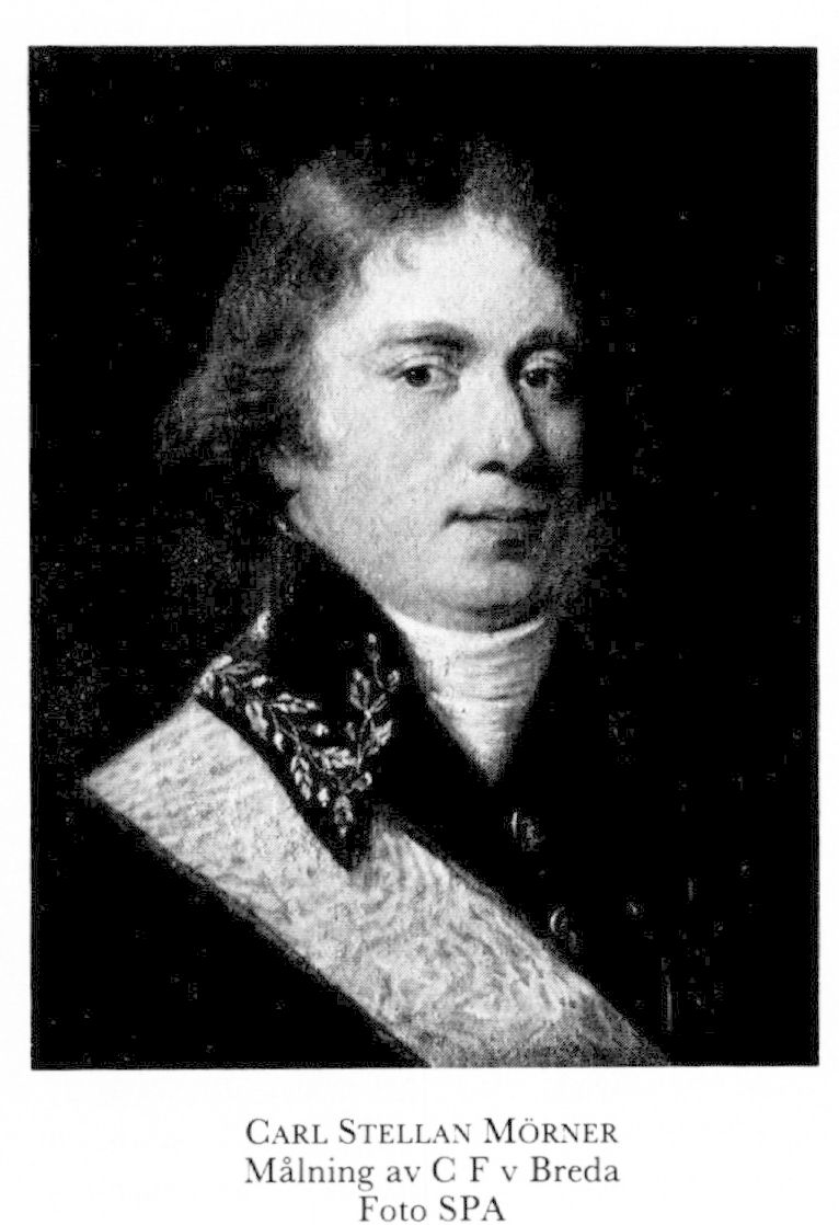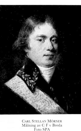 8 Mörner, Carl Stellan, sonsons son till M 5, bror till M 7, M 9, o M 11, f 9 mars 1761 i Lekaryd, Kron, d 24 juli 1834 i Växjö landsförs. Föräldrar: överstelöjtn greve Carl Gustaf M o Sofia Elisabeth Steuch. Korpral vid Södra skånska kavallerireg 27 juni 68, fanjunkare vid Mörnerska husarreg 24 mars 69, kvartermästare vid nämnda kavallerireg 16 aug 71, fältväbel vid Bohusläns dragonreg 27 mars 75, stabskornett där 9 aug 75, löjtn 22 sept 79, stabskapten 17 sept 83, sekundmajor 11 nov 84, premiärmajor vid Kronobergs reg 31 maj 88, deltog i riksdagarna 89, 00, 09-10, 15, 17-18 o 23 (ordf i ekon:utsk 00, i bevilln:utsk 09—10 o 15, i allm besvärs- o ekomutsk o led av förstärkta statsutsk 17 — 18), överstelöjtn vid Kronobergs reg 18 dec 92, landsh i Kronobergs län 14 juli 93—9 maj 27, presidents nhov 11 jan 15. — LLA 12, serafimerriddare 11 maj 18, en av rikets herrar 23 maj 24.
