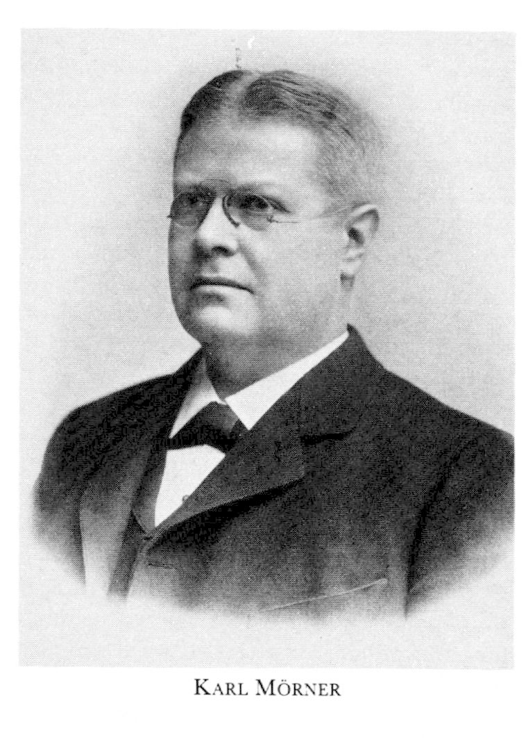 15 Mörner, Karl Axel Hampus, sonson till M 10, f 4 sept 1854 i Ljusnarsberg, Ör, d 30 mars 1917 i Sthlm, Kungsh. Föräldrar: bruksägaren, löjtn greve Hampus Stellan M o Maria Matilda Strokirk. Mogenhetsex vid Karolinska elementarlärov i Örebro 18 maj 72, inskr vid UU 16 sept 72, med fil ex 1 april 74, amanuens vid laboratoriet för med o fysiologisk kemi 4 sept 75–vt 76, MK 29 maj 80, tf prosektor vid anatom instit 1 okt (fullm 8 okt) 80vt 81, allt vid UU, eo laborator i med kemi vid KI 1 dec 831 okt 84, ML 1 okt 84, tf prof i kemi o farmaci 1 okt 84, disp 8 maj 86, allt vid Kl, MD vid UU 31 maj 86, prof i kemi o farmaci vid KI från 11 juni 86, rektor där från 1 jan 98 (beslut 18 dec 97), ordf i med nobelkomm från 00, led av VA:s komm ang VA:s o Naturhist riksmuseets nybyggnader 0415, ordf där 1415, ordf i Sv läkarsällsk 0910, led av komm ang värnplikten o den akad undervisn oktdec 14. — LVA 98 (led av förvaltn:utsk från 00, preses 07-08, v preses från 09), LFS 00, LVS 08.