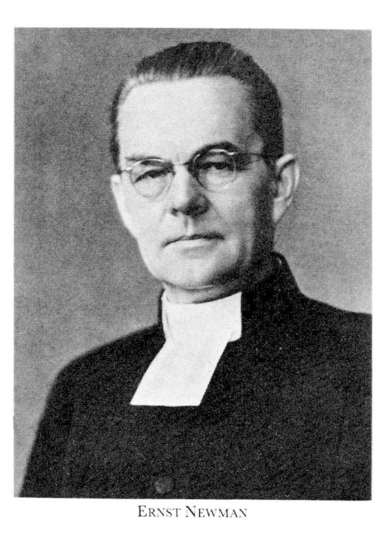Ernst N härstammade från Göinge. Fadern hade gjuteri och mekanisk verkstad i Osby och var till sist konsulterande ingenjör i Tyringe. Under slutet av 1880-talet vistades N:s föräldrar i New York, där de bytte sitt tidigare antagna släktnamn Nyman mot det engelskklingande Newman. Modern återvände i förväg till Sverige för att sonen skulle födas där. Vid tio års ålder sattes N i läroverk med villkoret att få gå kvar så länge han var bäst i klassen. Visserligen uppfyllde N detta krav, men ekonomiska bekymmer tvang honom vid 14 års ålder ut i arbetslivet som stenarbetare och murarlärling. Ett par år var han anställd i faderns firma. Han tvekade länge vilken bana han skulle välja och inriktade sig på att bli ingenjör eller arkitekt. 17 år gammal utförde han ritningar och kostnadsberäkningar till Osby samskola, där han ett par år var teckningslärare. Efter två år vid Lunds privata elementarskola avlade N studentexamen på reallinjen. Han skaffade sig därefter snabbt en yrkesutbildning och avlade folkskollärarexamen. Påverkad av A Lutteman (bd 24) beslöt han därefter att läsa teologi.