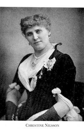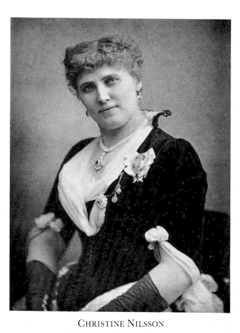 Nilsson, Christine, f 20 aug 1843 på gården Sjöabol (kallad Snugge) i Vederslöv, Kron, d 22 nov 1921 i Växjö. Föräldrar: lantbrukaren Jonas N o Stina-Cajsa Månsdtr. Sångstudier för Adelaide Valerius (g Leuhusen; bd 22, s 597) i Halmstad, för Franz Berwald (bd 4) i Sthlm 59-60, i Paris 60–64, knuten till Théâtre Lyrique där okt 64–okt 67, framträdde vid Her Majesty's i London flera säsonger 67-81, vid Operan i Paris 68-70, i USA 70-72, 73–74 o 82-84, i S:t Petersburg o Moskva 72–74 o 77, i England 75, i Sthlm 76, 81 o 85, i bl a Wien 77–78, i Tyskland, Frankrike o Österrike 85–87, i London maj-juni 88. – LMA 69.