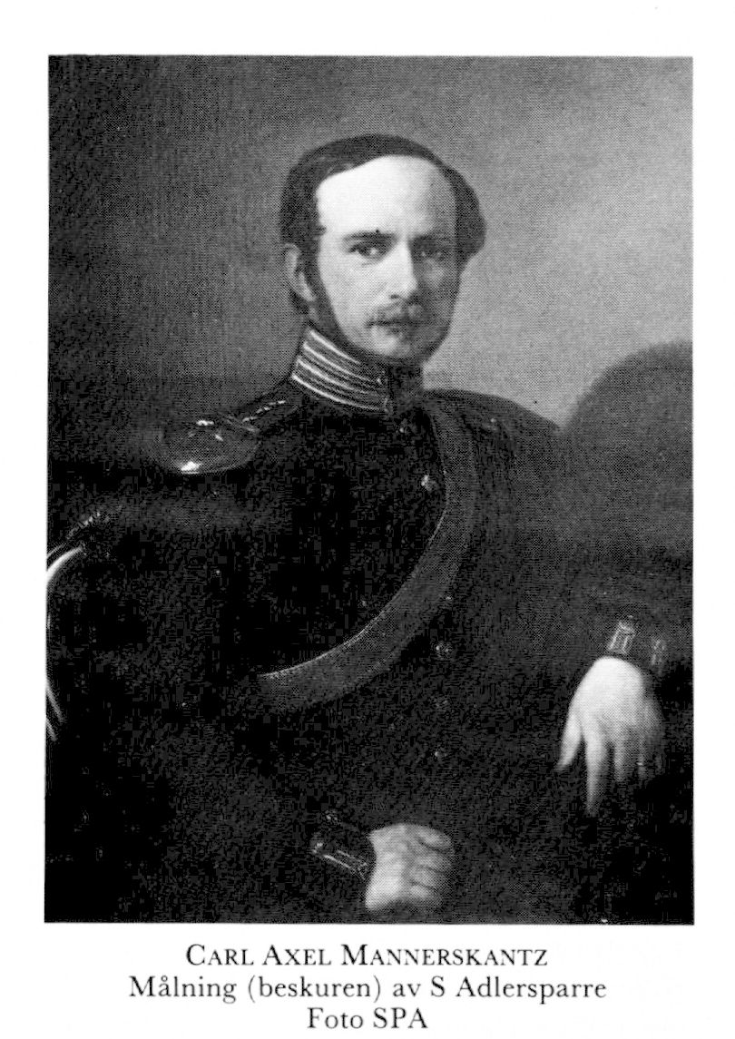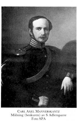 1 Mannerskantz, Carl Axel, f 27 nov 1809 i Halltorp, Kalm, d 5 jan 1888 där. Föräldrar: majoren Carl Mannerskants o Anna Charlotta v Arbin. Ägare till Värnanäs, Halltorp, vid faderns död 17, kadett vid krigsskolan på Karlberg 20 nov 23–9 aug 27, underlöjtn vid Vendes artillerireg 3 okt 27, löjtn där 10 febr 37, deltog i ståndsriksdagarna 40–66 (led av bankoutsk 40/41, 47/48, 50/51, 53/54, 56/58, 59/60 o 65/66, statsrevisor 56/58), led av AK 67–72 (v talman 67–72, led av bankoutsk 67–70, v ordf där 68), av FK 73–83 (led av KU 73–78, av särsk utsk 75 o 78, av tillf utsk 81), kapten vid Vendes artillerireg 17 sept 47, avsked från reg med tillstånd att kvarstå som kapten i armén 28 nov 48, v ordf i Kalmar läns hushållmsällsk 51–56, avsked ur armén 14 febr 56, led av finanskomm okt 58–febr 63, ordf i Kalmar läns södra hushållmsällsk 62–83, led av Kalmar läns odelade landsting 63–64, av Kalmar läns södra landsting 65–83, ordf 65–70 o 72–78, v ordf där 79–83, led av komm ang fästningsbyggnader vid Karlsborg, Vaxholm o Karlskrona juni–dec 67. – LLA 56, HedLLA 75.