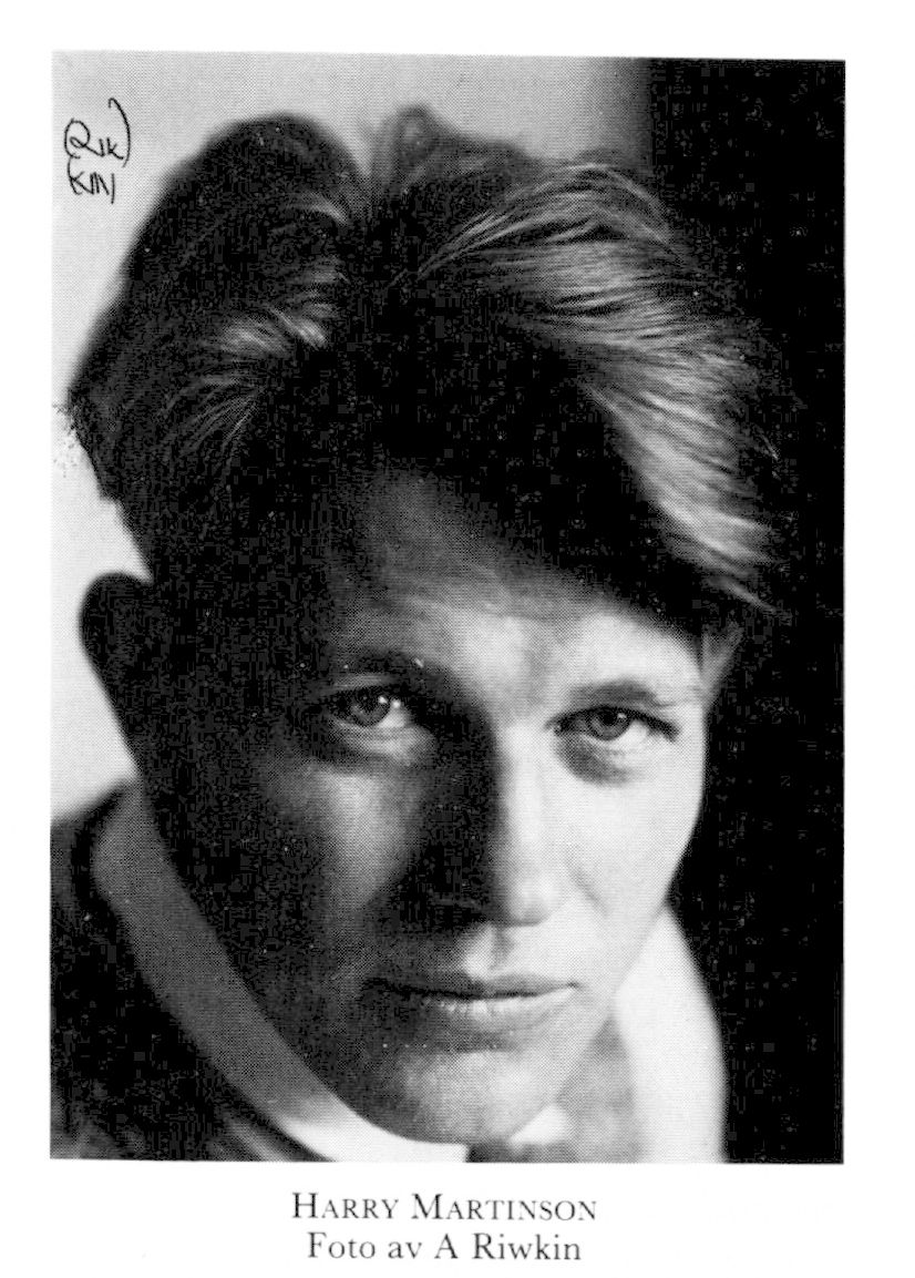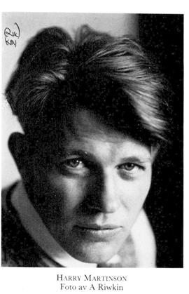 1 Martinson, Harry Edmund, f 6 maj 1904 i Jämshög, Blek, d 11 febr 1978 i Sollentuna, Sth. Föräldrar: Lanthandlanden Martin Olofsson o Bengta (Betty) Swensson. Inskr vid skeppsgossekåren i Karlskrona 19, j ungman o fartygseldare 2027. Förf. De Nios pris 38, SvD:s litt:pris 44, Frödingstipendiet 47, LSA 49, SA:s Bellmanspris 51 o 62, fil hedersdr vid GH 2 okt 54, Litt:främjandets stora pris 55, nobelpriset i litt (tills med Eyvindjohnson) 74.