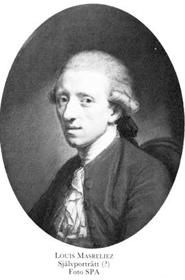 2 Masreliez, Louis Adrien, son till M 1, f i början av 1748 i Paris, d 19 mars 1810 i Sthlm, S:t Eugenia katolska förs. Elev i faderns verkstad, vid Ritarakad 58, resa till Paris 69, studier i Italien 70–82, prof vid Målar- o bildhuggarakad 18 april 84jan 97, ledde inredn:arbetena vid de k slotten 8505, agré vid VHAA 2 jan 89, rektor vid Målar- o bildhuggarakad 29 juni 02, hovintendent 9 febr 03, dir vid nämnda akad från 11 maj 05. Led av Målar- o bildhuggarakad 83, LVHAA 03.