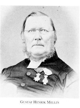 Mellin, Gustaf Henrik, f 23 april 1803 i Siikajoki, Uleåborgs län, d 2 aug 1876 i N Vram, Krist. Föräldrar: kh Abraham M o Sara Margaretha Wacklin. Inskr vid UU 29 sept 21, prästex 1 juli 29, prästv 9 juli 29, komministersadjunkt i Klara förs, Sthlm, 8 juni 30, v kollega vid Klara h lärdomsskola ht 30, utg av tidskr Museum för naturvetensk, konst o historia febr 35 (utg:bevis 17 febr)37, av Sverige framstäldt i teckningar dec 36 (utg: bevis 24 dec)–mars 40, v komminister i Klara förs 20 juni 37sept 39, utg av Folkskrifter sept 39 (utg:bevis 7 sept–dec 40, pastoralex i Strängnäs 4 nov 39, eo kanslist hos prästeståndet vid riksdagen 44–45, ord kanslist där 47 o 50, bataljonspredikant vid Svea livgarde 18 febr 48, tf regementspastor vid gardet vid exp till Fyn maj–sept 48 o sommaren 49, kh i N Vram o Bjuv 24 sept 51 (tilltr 52), prost 28 jan 53, tf kontraktsprost i S Åsbo hd några månader 58 o 59, led av Kristianstad läns landsting 65–66. – Förf.