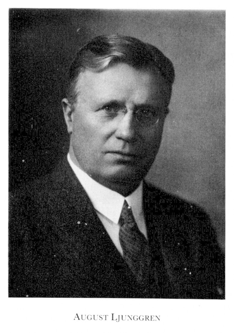 2 Ljunggren, August, bror till L 1, f 29 okt 1874 i S Ljunga, Kron, d 27 april 1943 i Sthlm, Bromma. Studentex vid Nyköpings hal 97, inskr vid UU vt 98, folkskollärarex i Linköping 99, inskr vid LU ht 99–ht 00, FK där 14 sept 00, ordf för Studenternas helnykterhetsförb i Lund vt 00–ht 00, led av centralstyr för Sveriges studerande ungdoms helnykterhetsförb (SSUH) 00-05, lär vid Sthlms folkskolor 01, led av Templarordens (TO) verks t råd 02–20, ord lär i Kungsholms förs, Sthlm, 03–09, ledare för TO:s ungdoms- o studieverksamhet 03, ordenschef för TO 08–09, led av styr för Centralförb för socialt arbete (CSA) 03–08, dir för Centralförb för nykterhetsundervisn (CFN) 03–41, ordf i Sthlms nykterhetsfolks centralförs 04–17, led av Sveriges nykterhetssällsk:s repr:förs 04–17, red för tidskr Tirfing 06–41, led av Bromma fattigvårdsstyr 09–19, av Sthlms stadsfullm 10–19, av Sthlms frisinnade valmansfören:s centralstyr o VU 10–19, av FK 12–26 (led av KU 19–26, av opinionsnämnden 21), sekr i riksdagens nykterhetsgrupp 12–26, chefred för Afton-tidn juni–juli 13, led av styr för Tryckeriab Sverige 13, av komm ang nykterhetsundervisn 14–15, chefred för Eskilstuna-kuriren 20, led av centralstyr o arbetsutsk för Sthlms frisinnade medborgarfören (från 35 folkpartiets l:a stockholmsavd) 21, v ordf där 35.