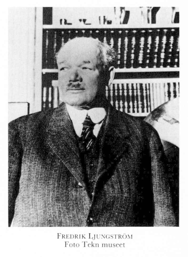 2 Ljungström, Fredrik, bror till L 1, f 16 juni 1875 i Sthlm, Kat, d 18 febr 1964 i Lidingö. Studier vid Östermalms lärov i Sthlm, elev vid G Eriksons förberedande kurs till KTH, konstruktör tills med Birger L (L 1) 90–96, anställd hos Alfred Nobel 95–96, konstruktör vid The New Cycle Co, London, 96, vid ab Separator, Sthlm, 03–07, led av styr för ab Formator, Sthlm, 07 (bolagsordn 11 febr 07)–maj 10, konstruktör vid ab Ljungströms ångturbin, Lidingö, 08–12, vid Sv turbinfabriks ab Ljungström (STAL), Finspång, Risinge, Ög, 13, övering 14–16, suppl i styr där maj–dec 16, led av styr för Finspongs badhusab 15–17, för Finspongs handelsfören upa 15–18, övering vid ab Ljungströms ångturbin, Lidingö, 17–25, VD o ordf i styr för ab Spontan, Sthlm, 26 (bolagsord 31 aug 26)–33, privat konstruktörsverksamhet från 34, konsult vid STAL från 61. – LIVA 24, HedLIVA 40, IVA:s GM 43, tekn hedersdr vid KTH maj 44, LVA 45.